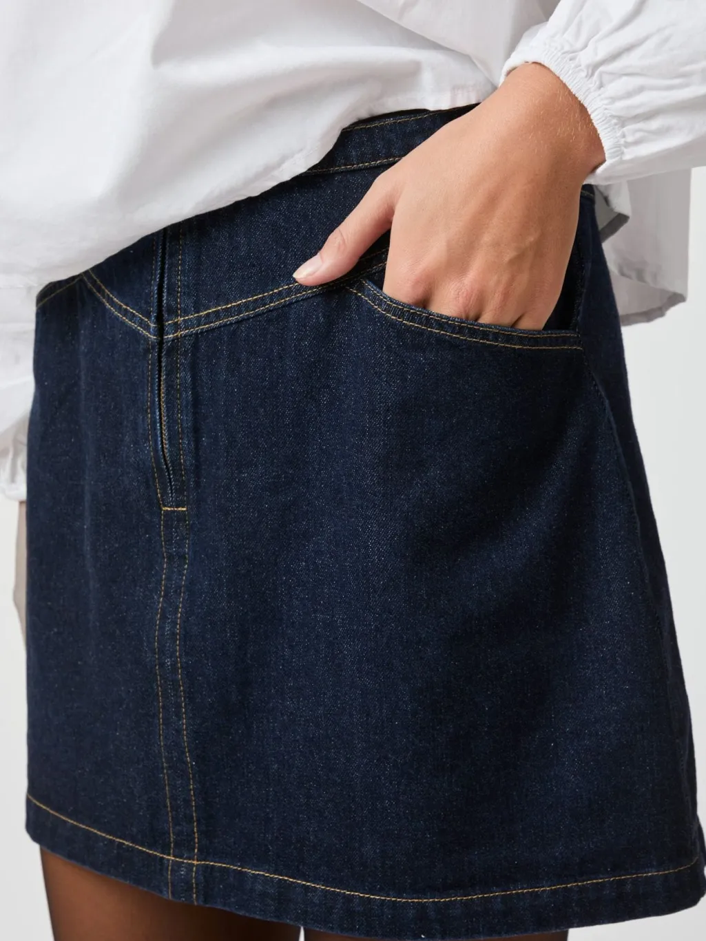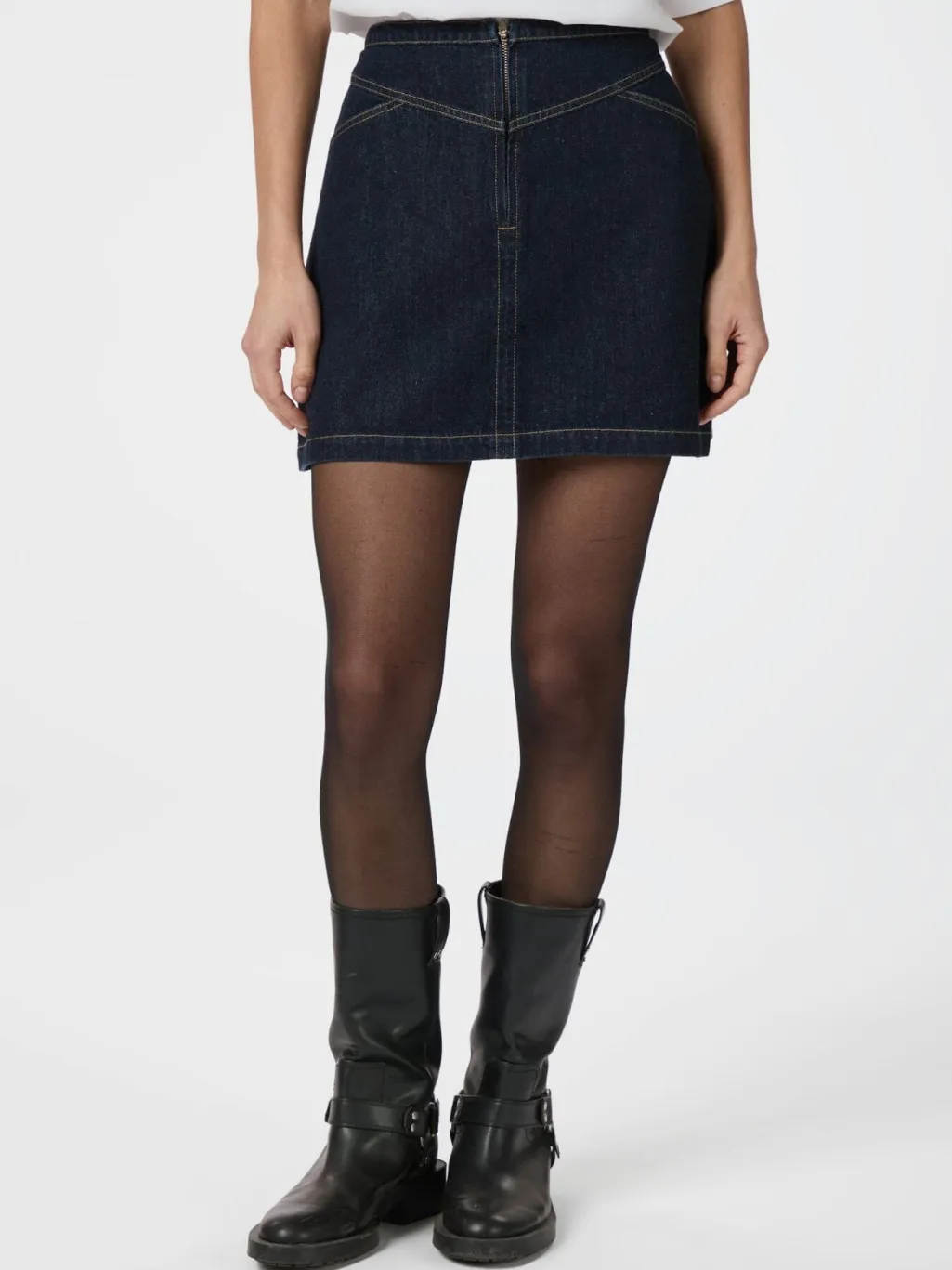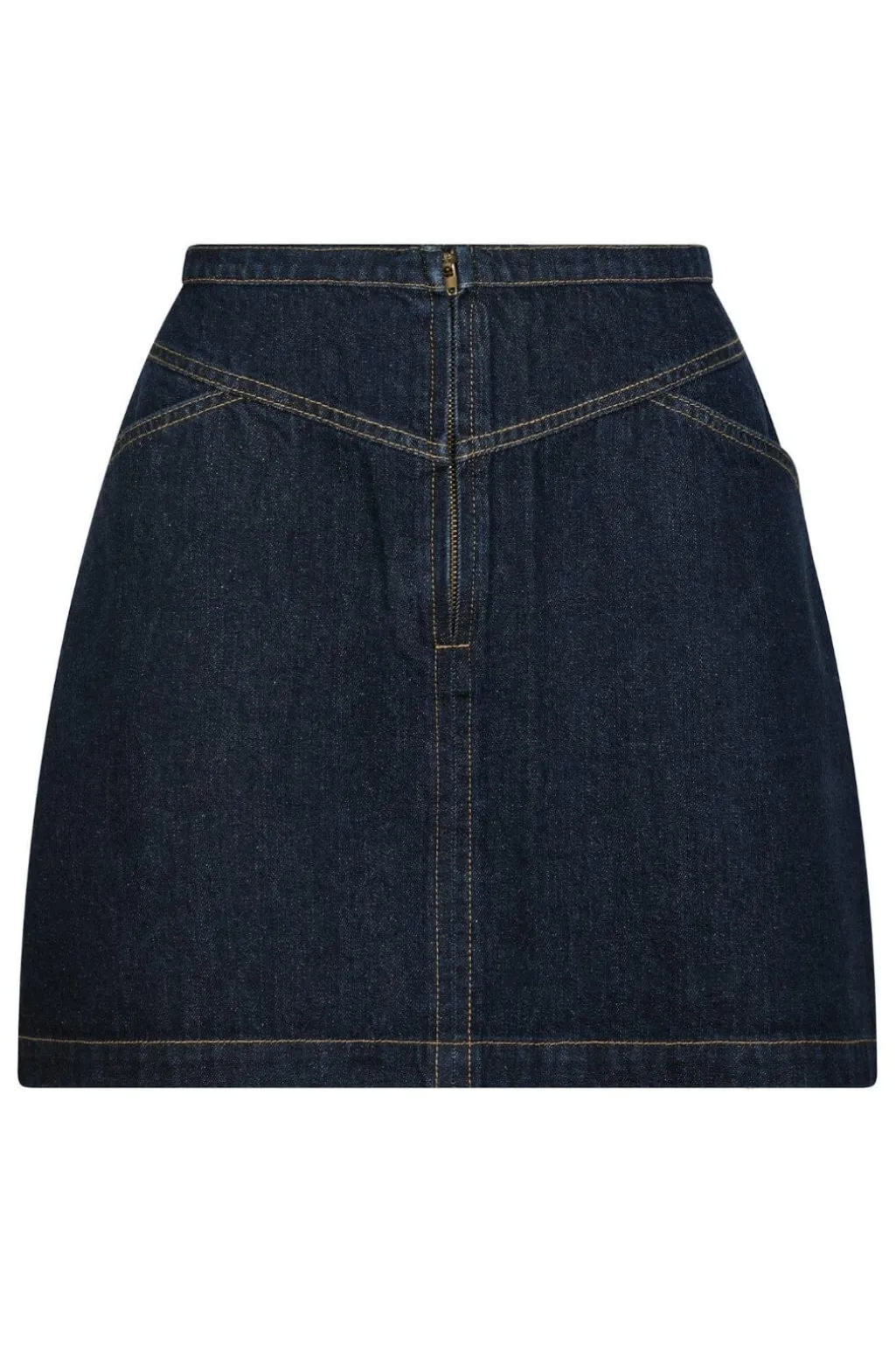 Mørkeblå denimnederdel fra Neo Noir med dekorative syninger. Nederdelen har en lårlang længde og en regular fit med almindelig taljehøjde.