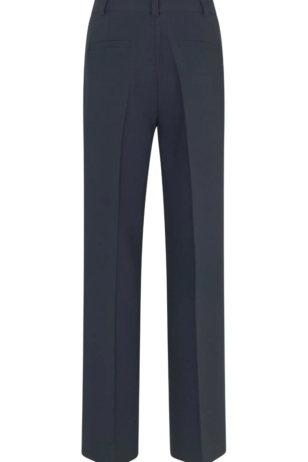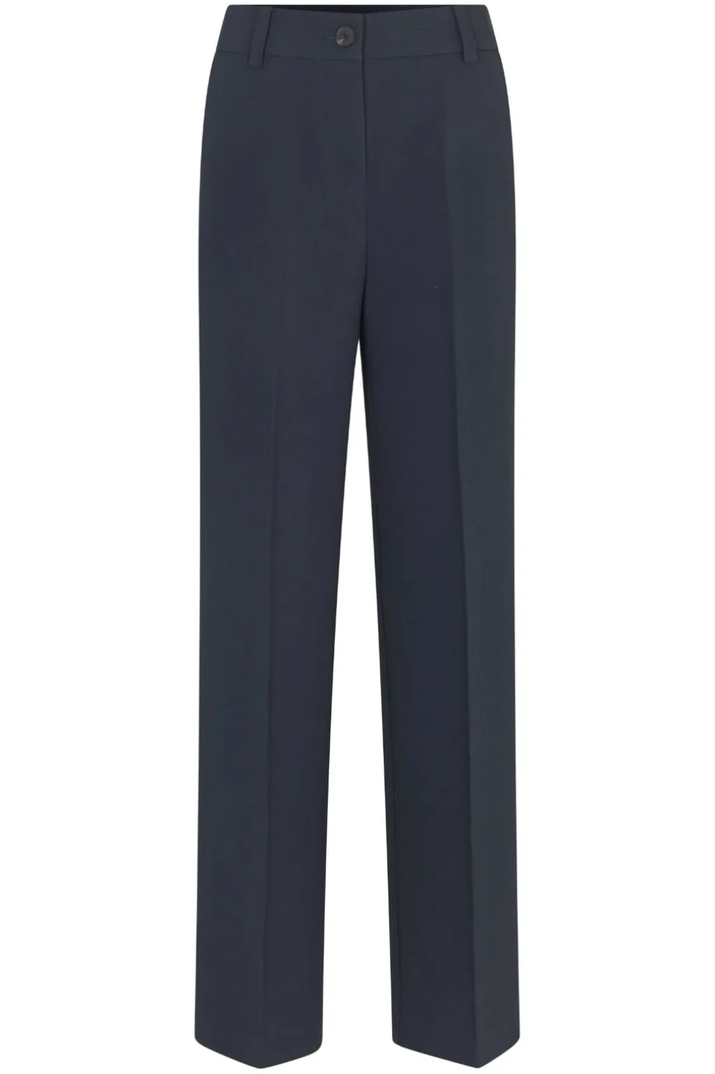 Mørkeblå bukser fra Modström med lige, vide ben og pressefolder. Bukserne har en loose fit og ankellængde, hvilket gør dem brugbare til mange anledninger.