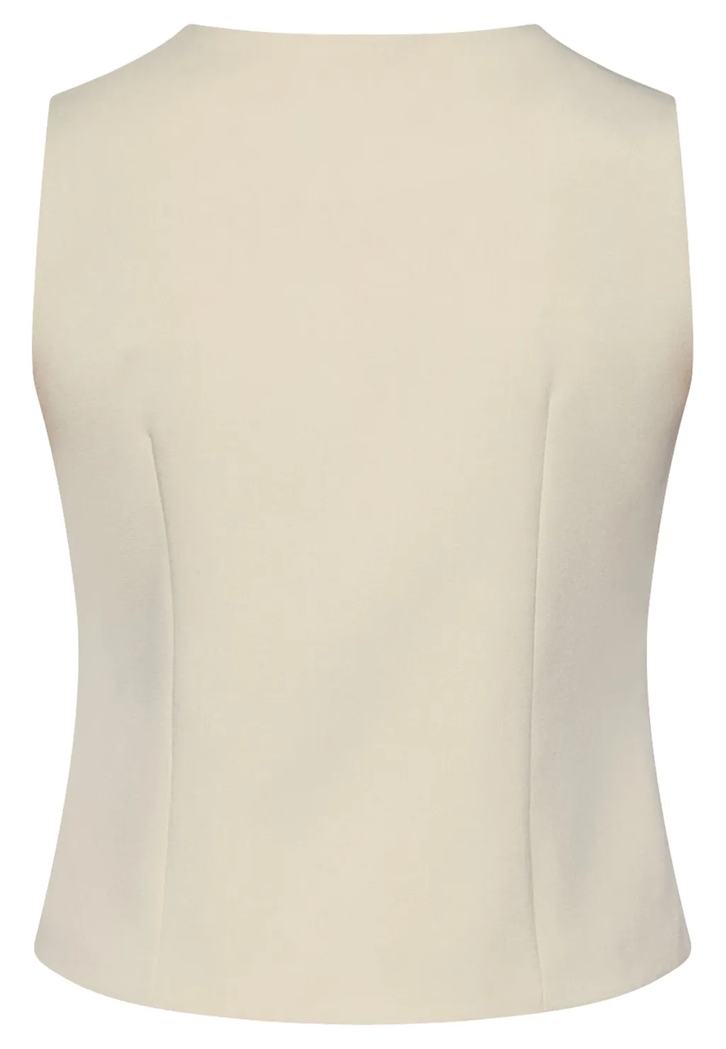 Ærmeløs vest fra Sisters Point i en lys beige nuance. Vesten har en V-hals og dekorative knapper langs fronten.
