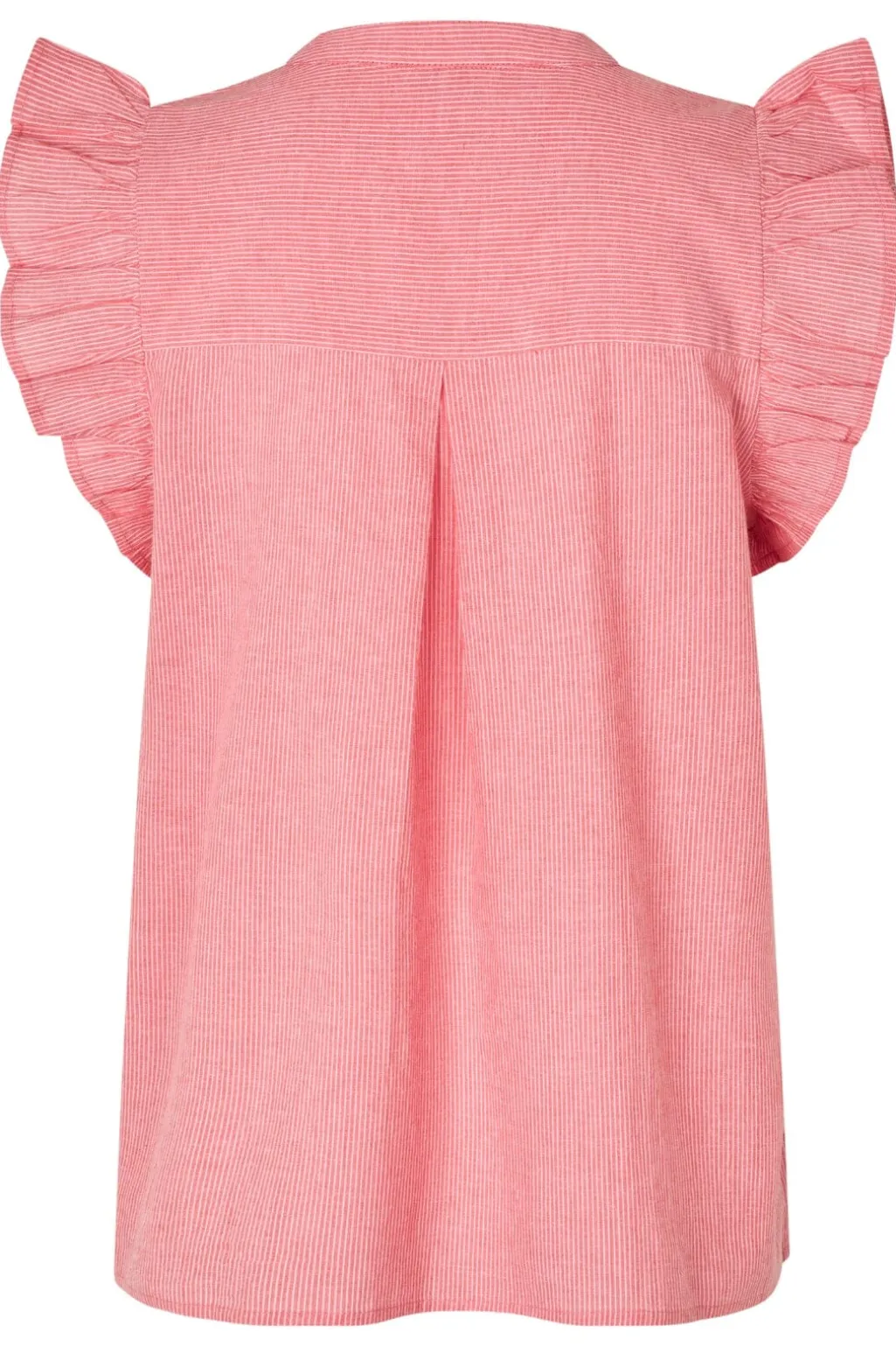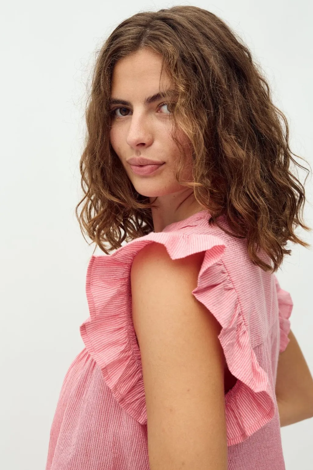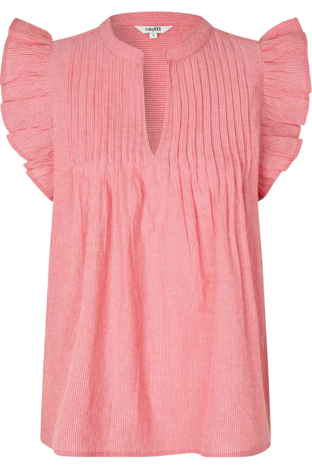 Stribet top fra MbyM med løs pasform og flæseærmer. Den pinkrøde top har en nøglehuludskæring og et let, luftigt design i bomuldskvalitet.
