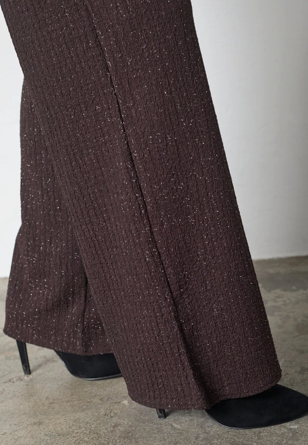 Bukser fra Sisters Point i brun farve med sølvglimt. Bukserne passer til både festlige og formelle lejligheder.