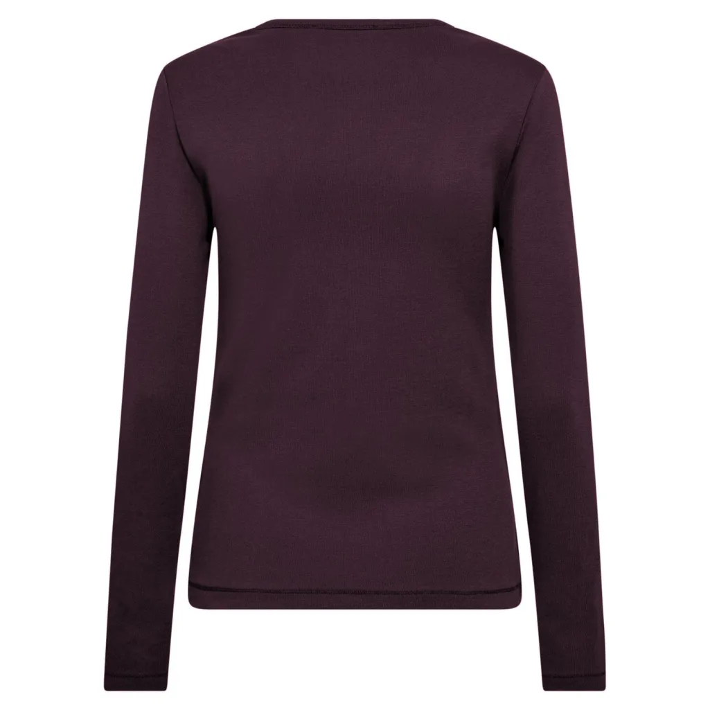 Langærmet t-shirt fra Co’Couture i en dyb blommefarve. Trøjen er lavet af økologisk bomuld og har broderi på brystet.