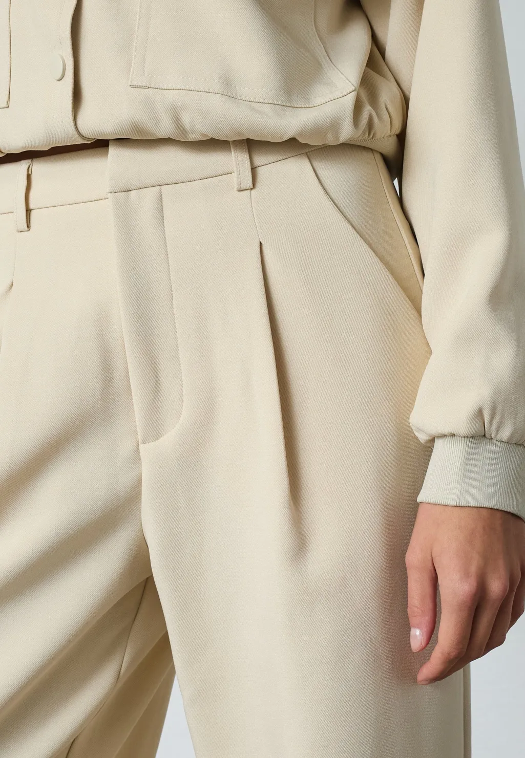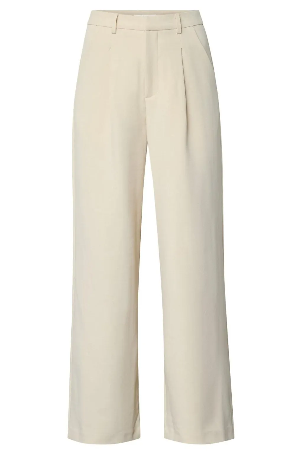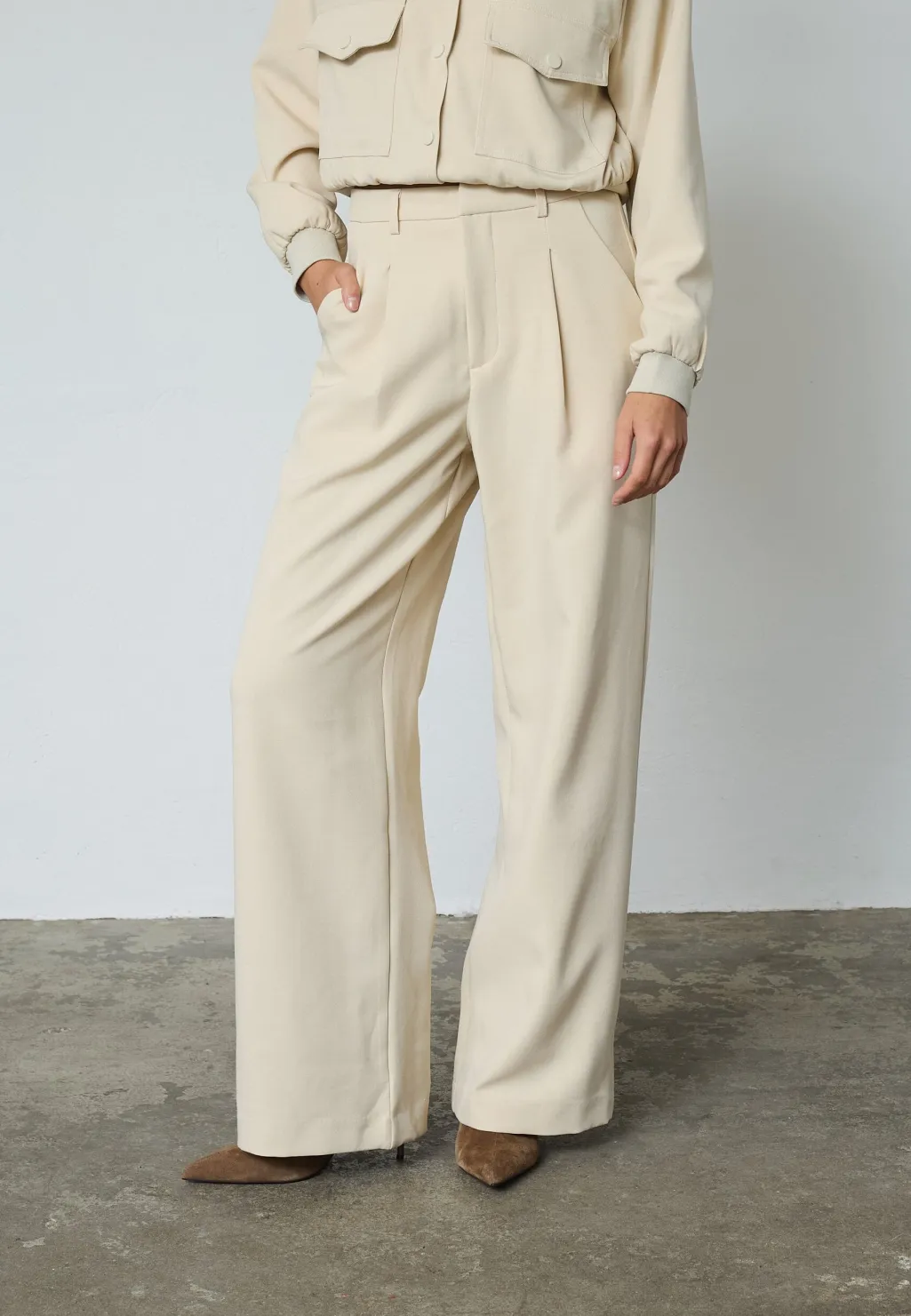 Habitbukser fra Sisters Point i en lys beige nuance. Bukserne har vide ben, høj talje og en løs pasform med læg foran.