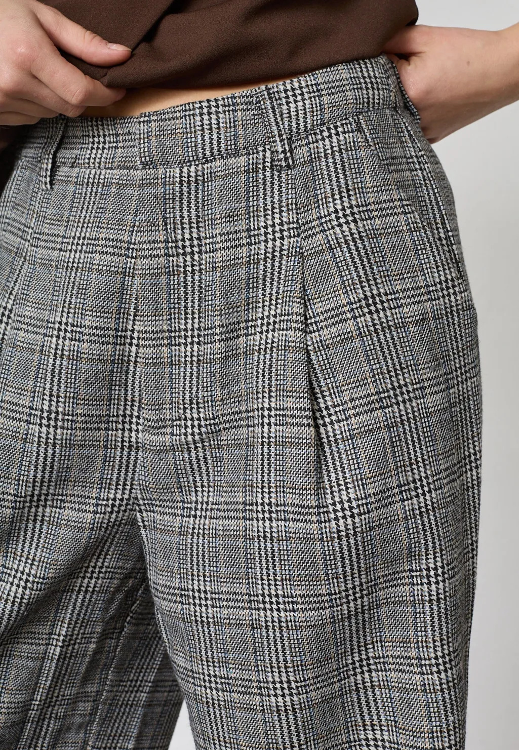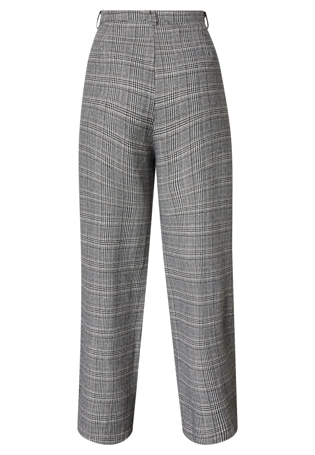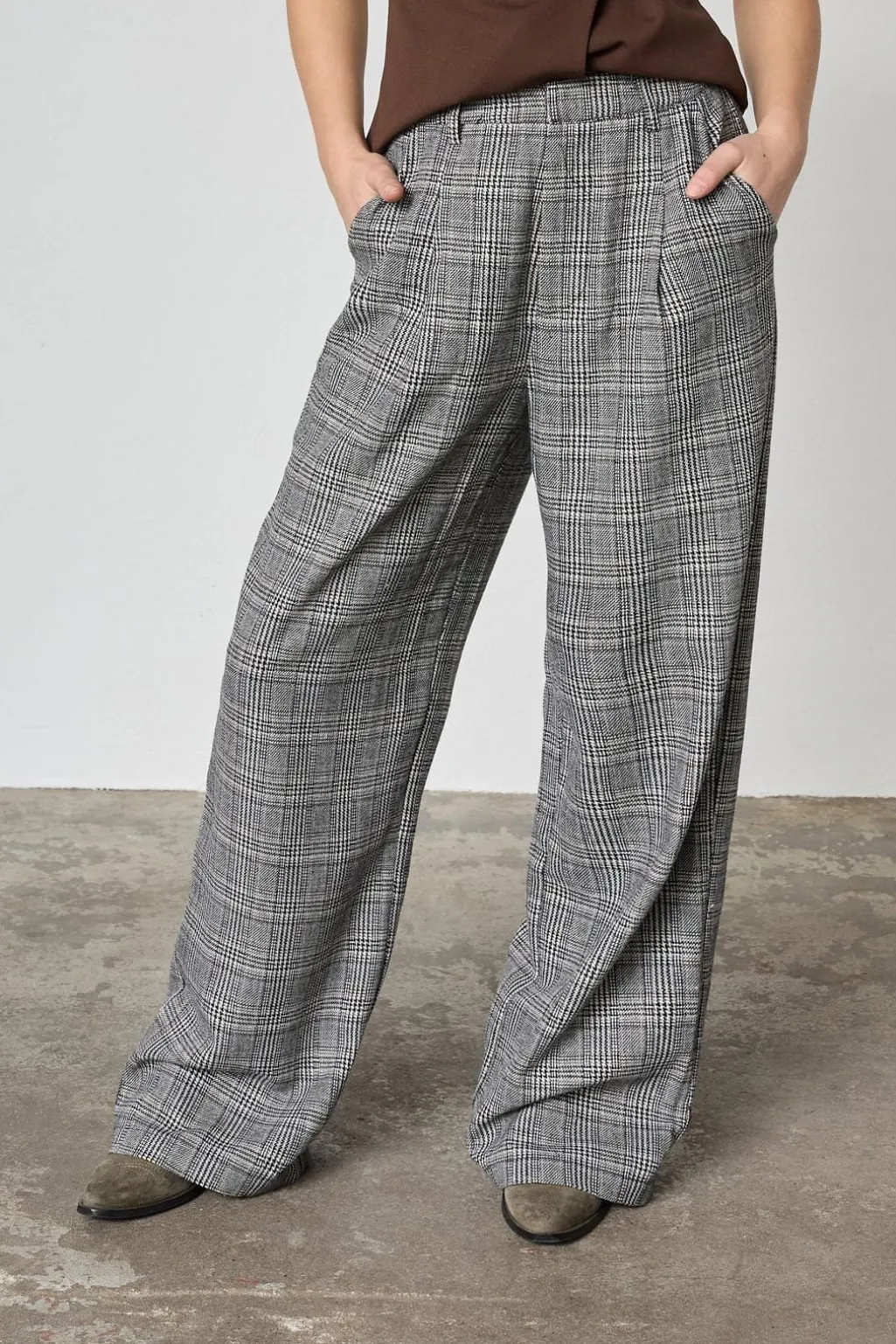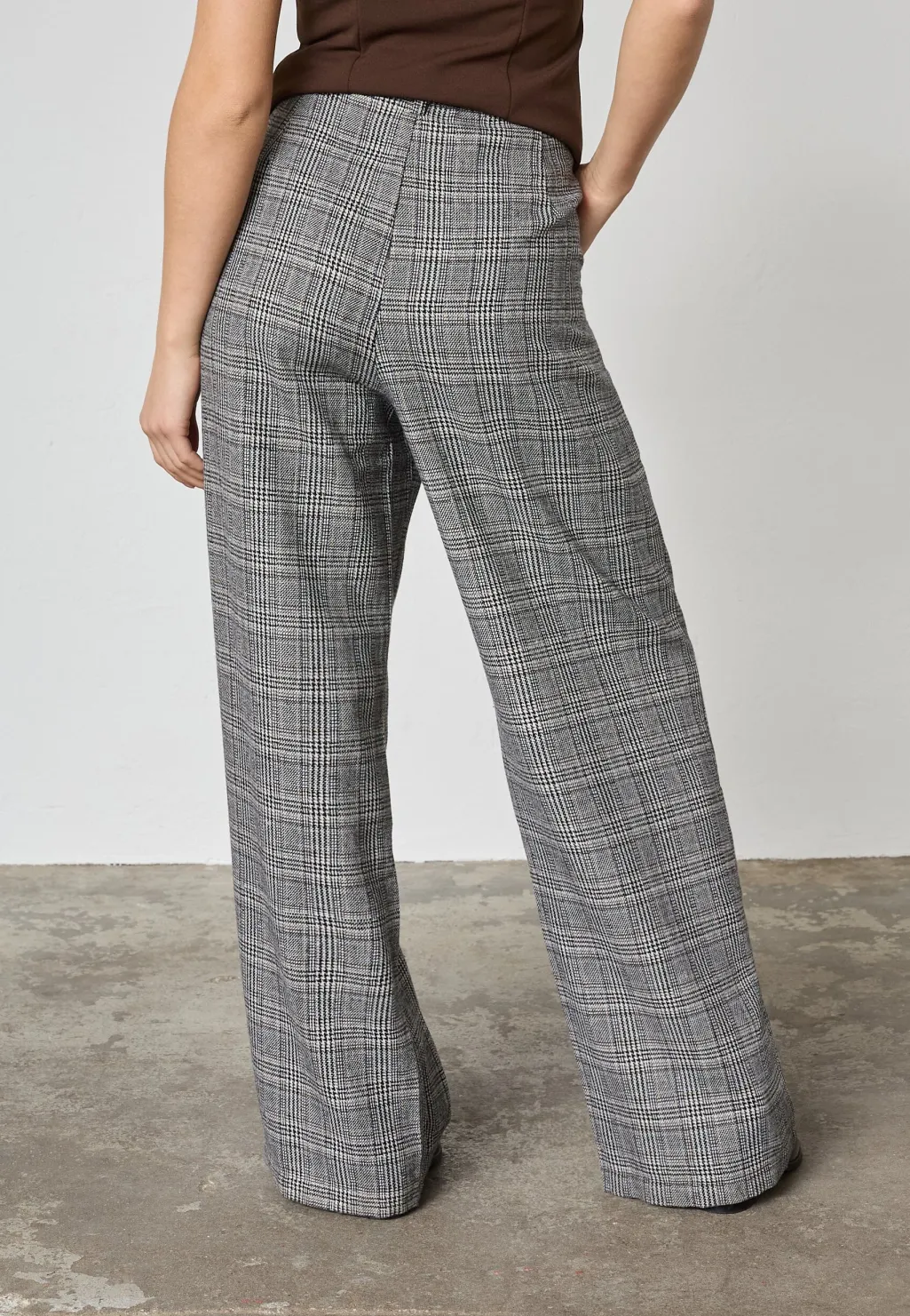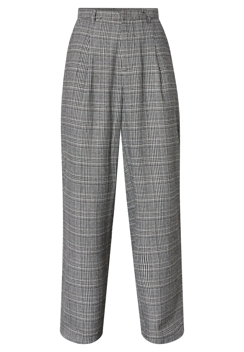 Grå ternede bukser fra Sisters Point med løs pasform. Bukserne har brede ben og går ned til gulvet. Det ternede mønster giver et klassisk udtryk.