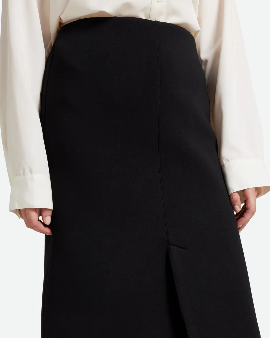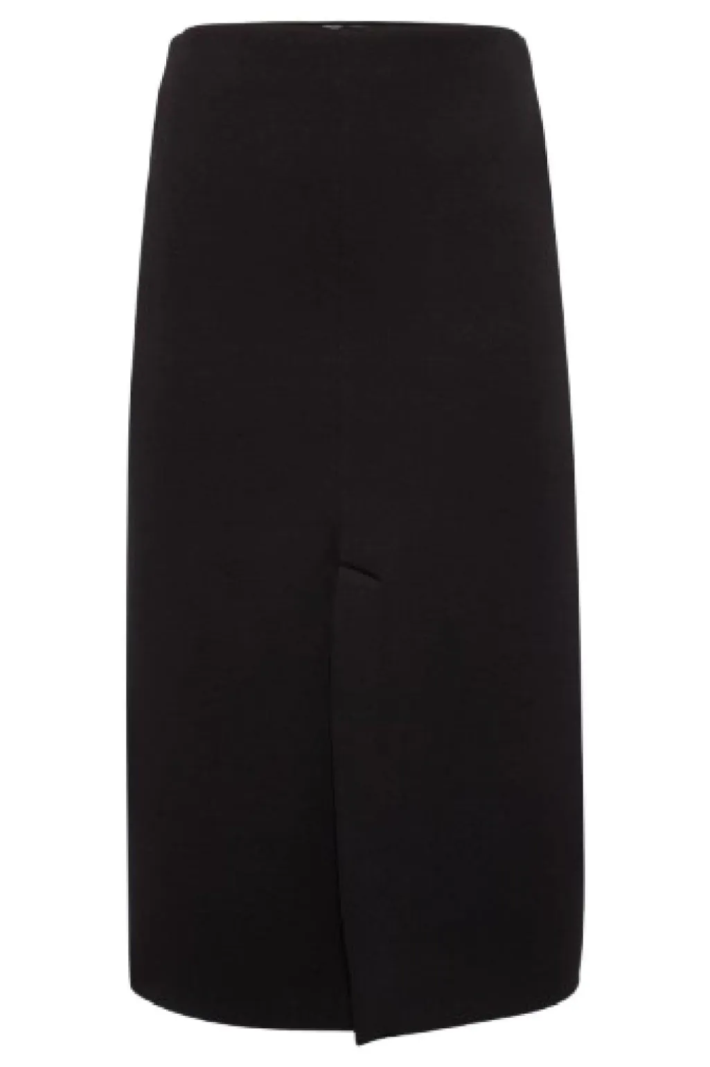 Sort nederdel fra Moves By Minimum i kalvelængde med lige silhuet og frontslid. Den enkle stil passer til både kontoret og festlige lejligheder.