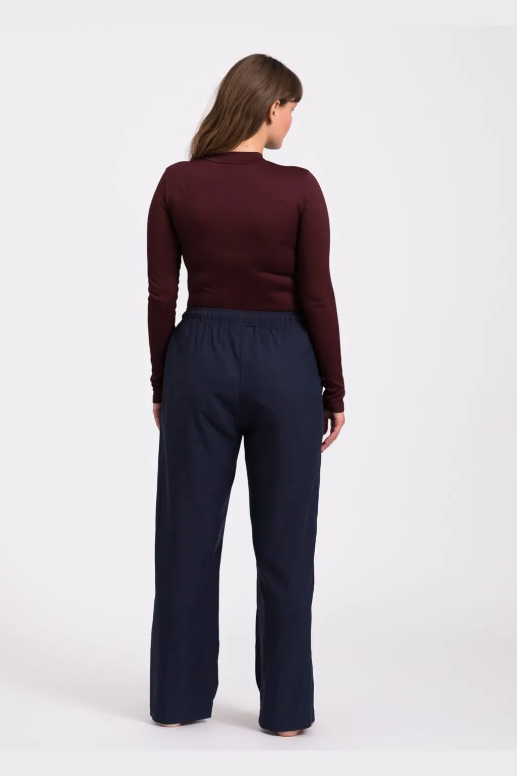 Vinrød bodystocking fra Lykkeland Ateliér med høj hals og lynlås foran. Den tætsiddende model har lange ærmer og er lavet i et strækbart materiale, der følger kroppens bevægelser.