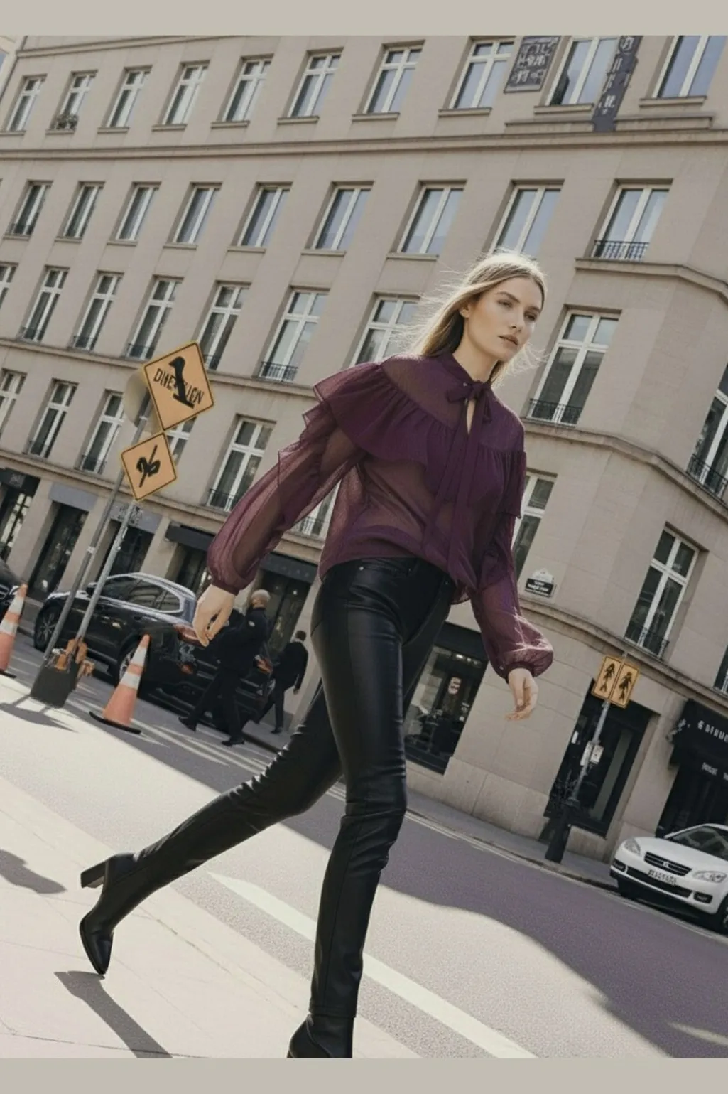 Lilla bluse fra Hypedrop med print og ruffle-detaljer. Blusen har en V-hals med bindebånd og lange ærmer. Den løse pasform gør den behagelig at have på.