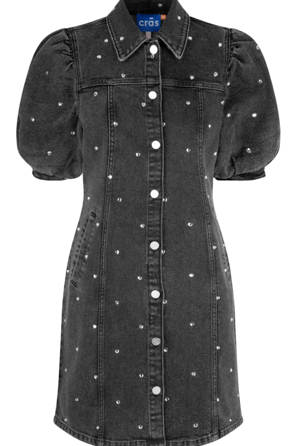 Smuk denimkjole med korte ærmer og knapper ned fortil.