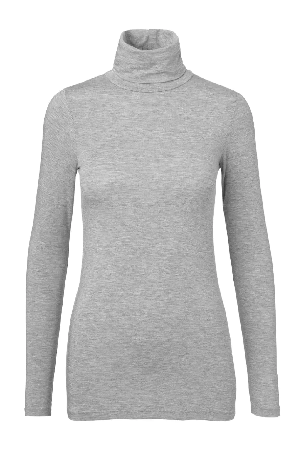 Lysegrå turtleneck fra MbyM med lange ærmer. Lavet af blød modal med elastan, der giver god bevægelsesfrihed og holder faconen.