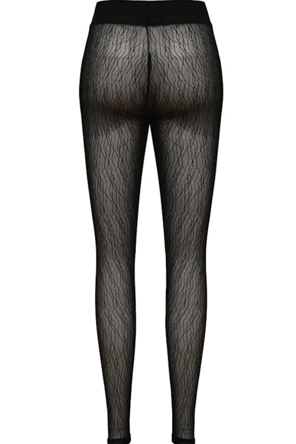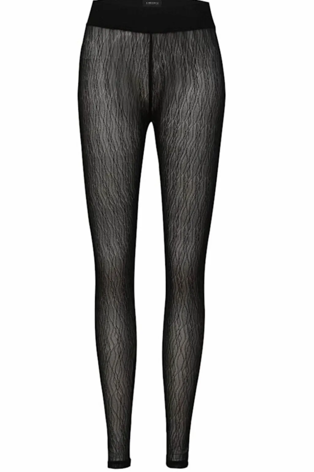 Sorte leggings fra Liberte med bølgende linjemønster. Stoffet har dekorative syninger, der fremhæver mønsteret. Leggingsene går til anklen og har en normal talje.
