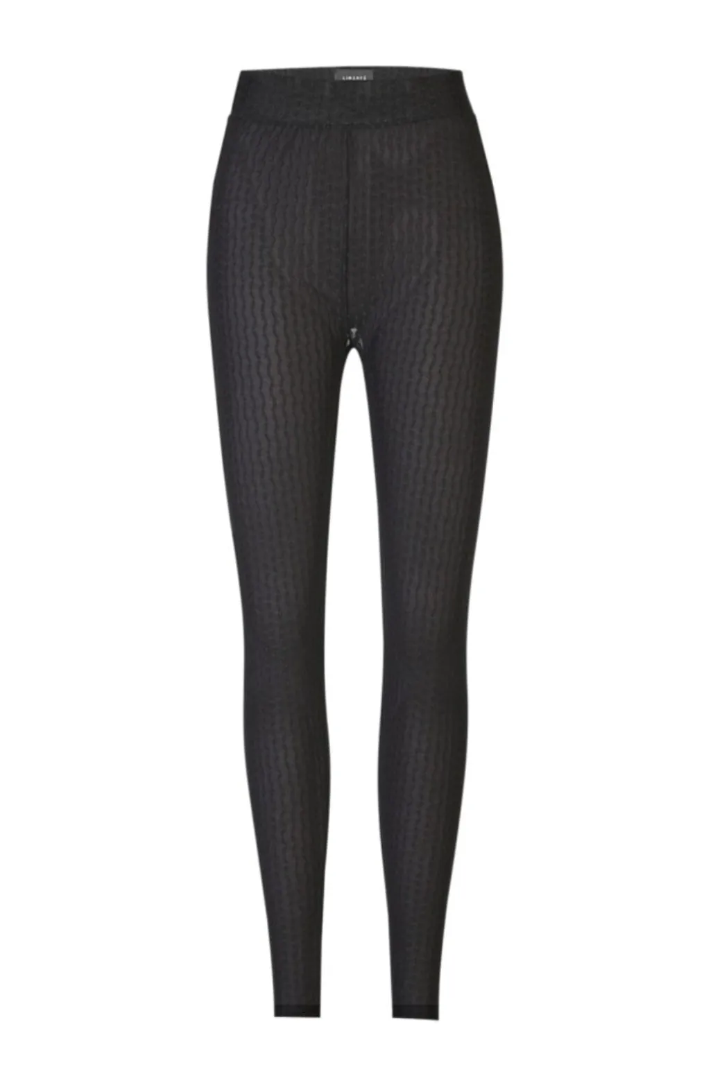 Sorte leggings fra Liberte med et mønster af bølgede linjer. Leggingsene har en høj talje og en tætsiddende pasform.