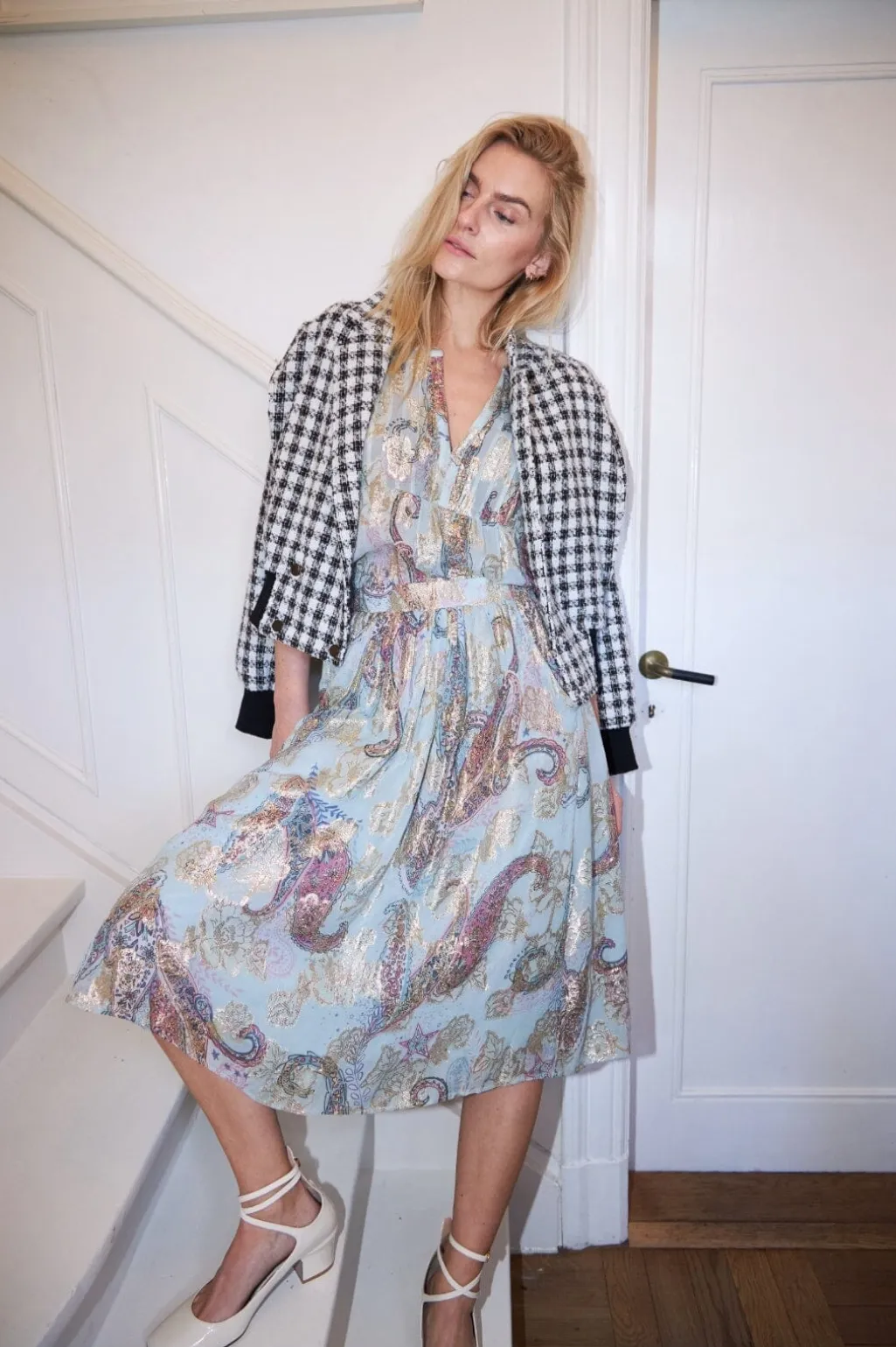 Designet i en klassisk og elegant pasform, og vi er meget begejstrede for denne nye model. Toppen har en rund halsudskæring med en lukning foran, som gør den til en v-hals, når den bruges åben. Vi er helt vilde med de smukke plisseringer på brystet og de korte ærmer med flæser. At tage noget klassisk og give det et unikt twist er, hvad Lollys Laundry handler om. Den er en centimeter længere bagpå end foran og er true to size.
