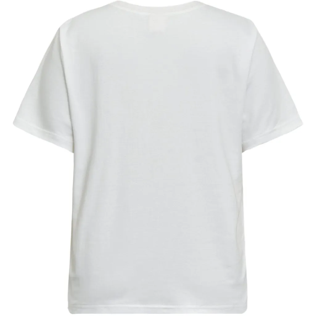 Hvid t-shirt fra Gossia med et grafisk print på forsiden. Printet viser en silhuet med hat og det røde nummer 73. T-shirten har en rund halsudskæring og korte ærmer.