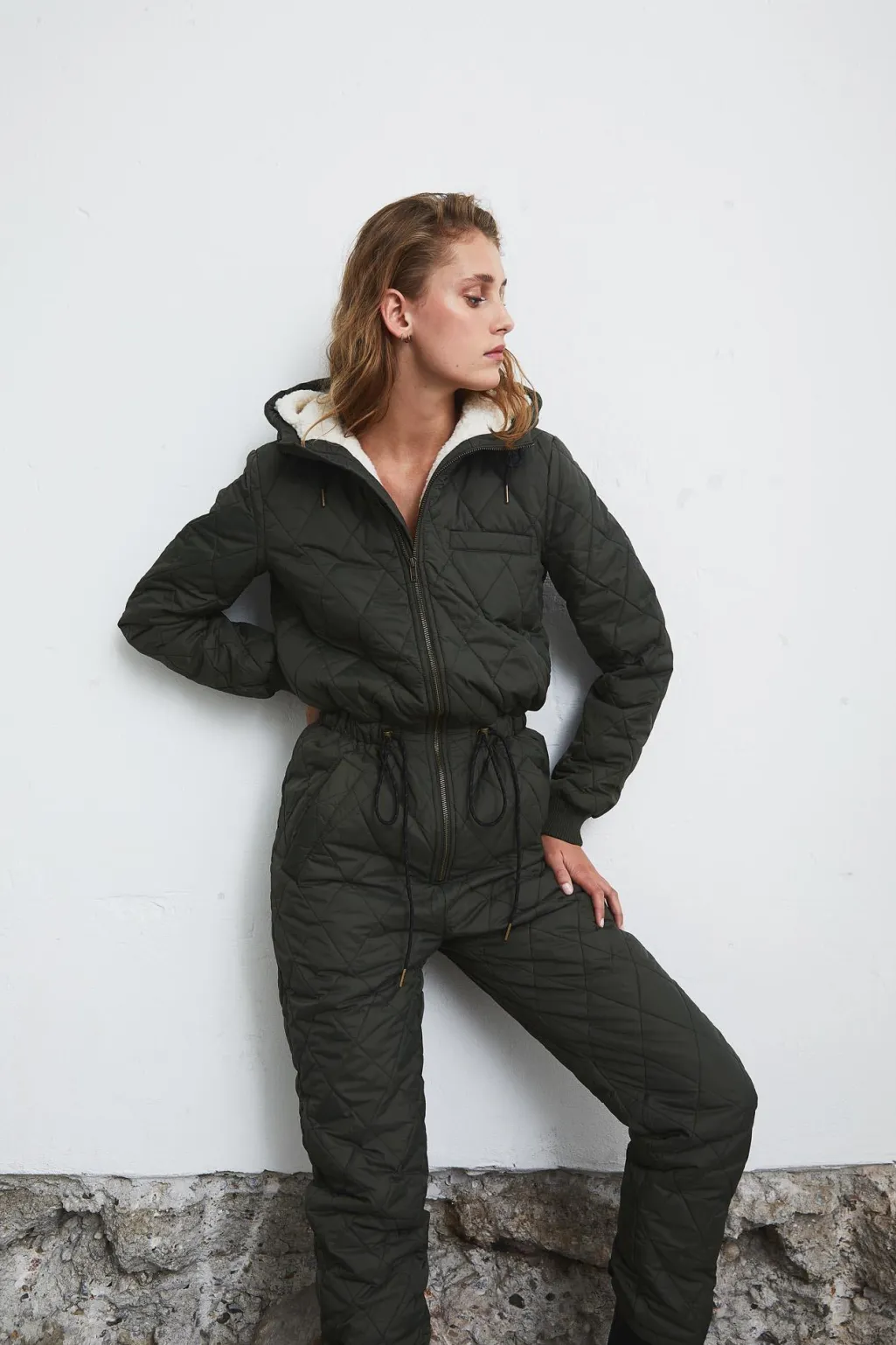 Super lækker termodragt til kvinder fra Global Funk. I taljen er der elastik og snor som kan strammes ind. Dragten har et lækkert teddy foer, samt en hue som også kan spændes ind. Dragten har ribkant ved ærmerne. Perfekt til vinter, har almindelig polyester foer i ben og ærmer. Og teddy/pile foer i overkrop og hætte.