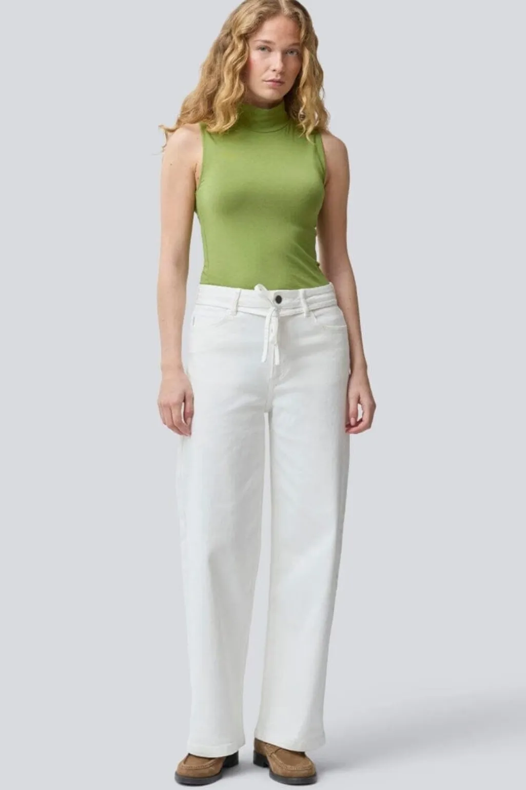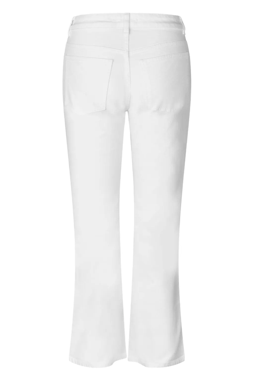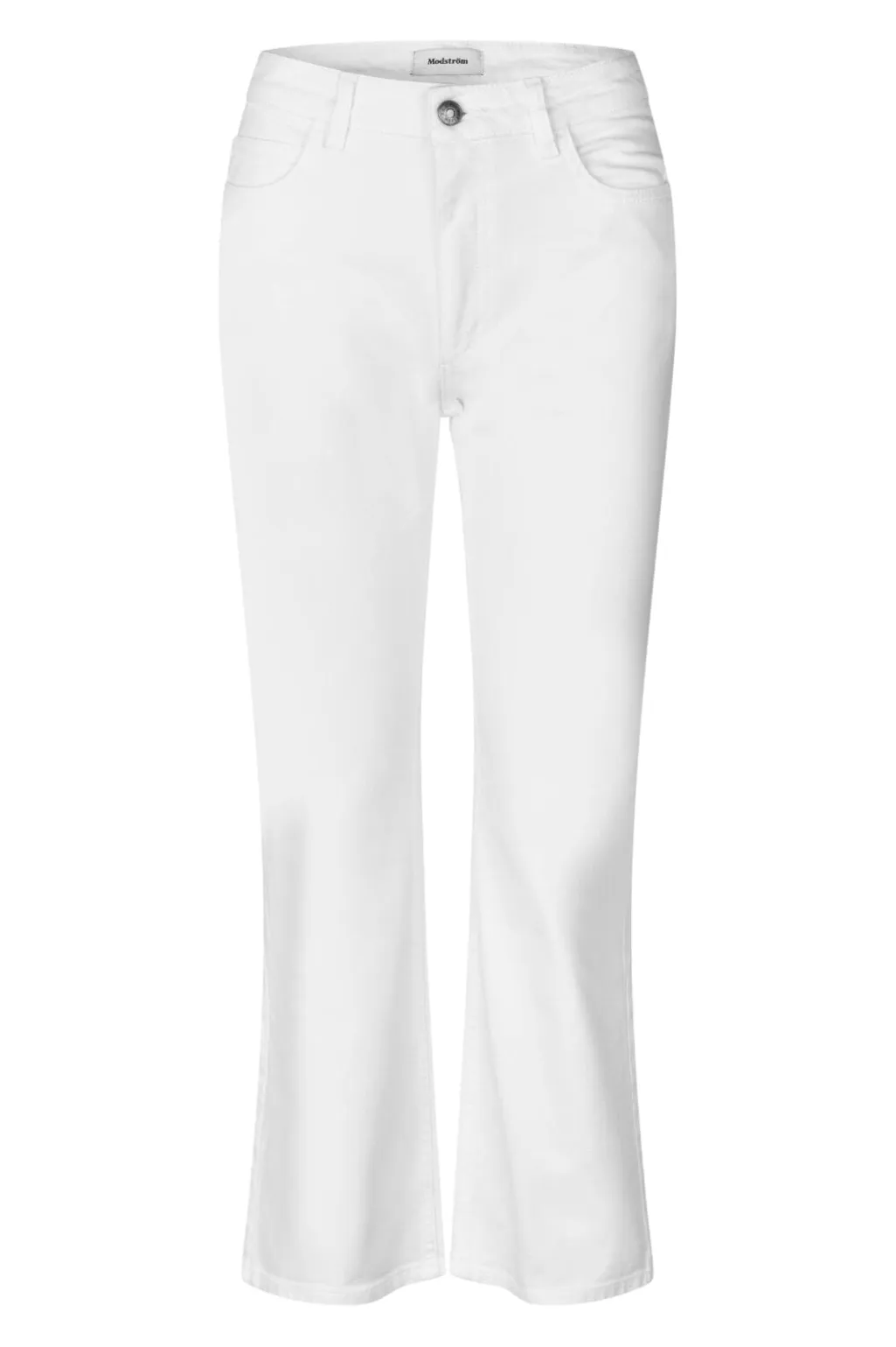 Hvide cropped jeans fra Modström i bomuldsdenim. Jeansene har høj talje med bindebånd og praktiske for- og baglommer. Den croppede længde giver et rent og enkelt udtryk.