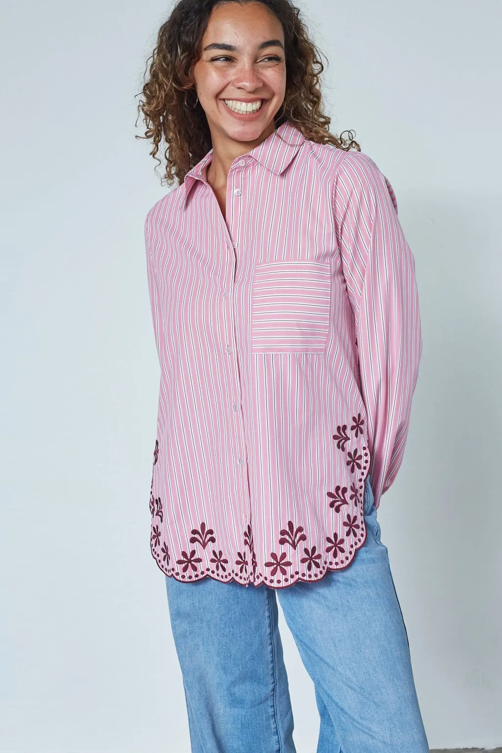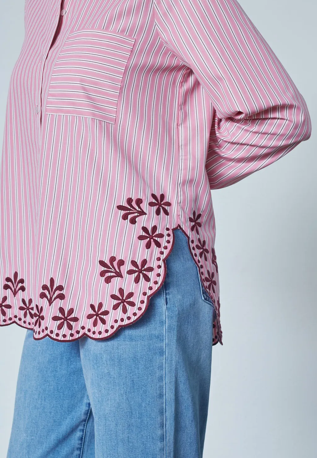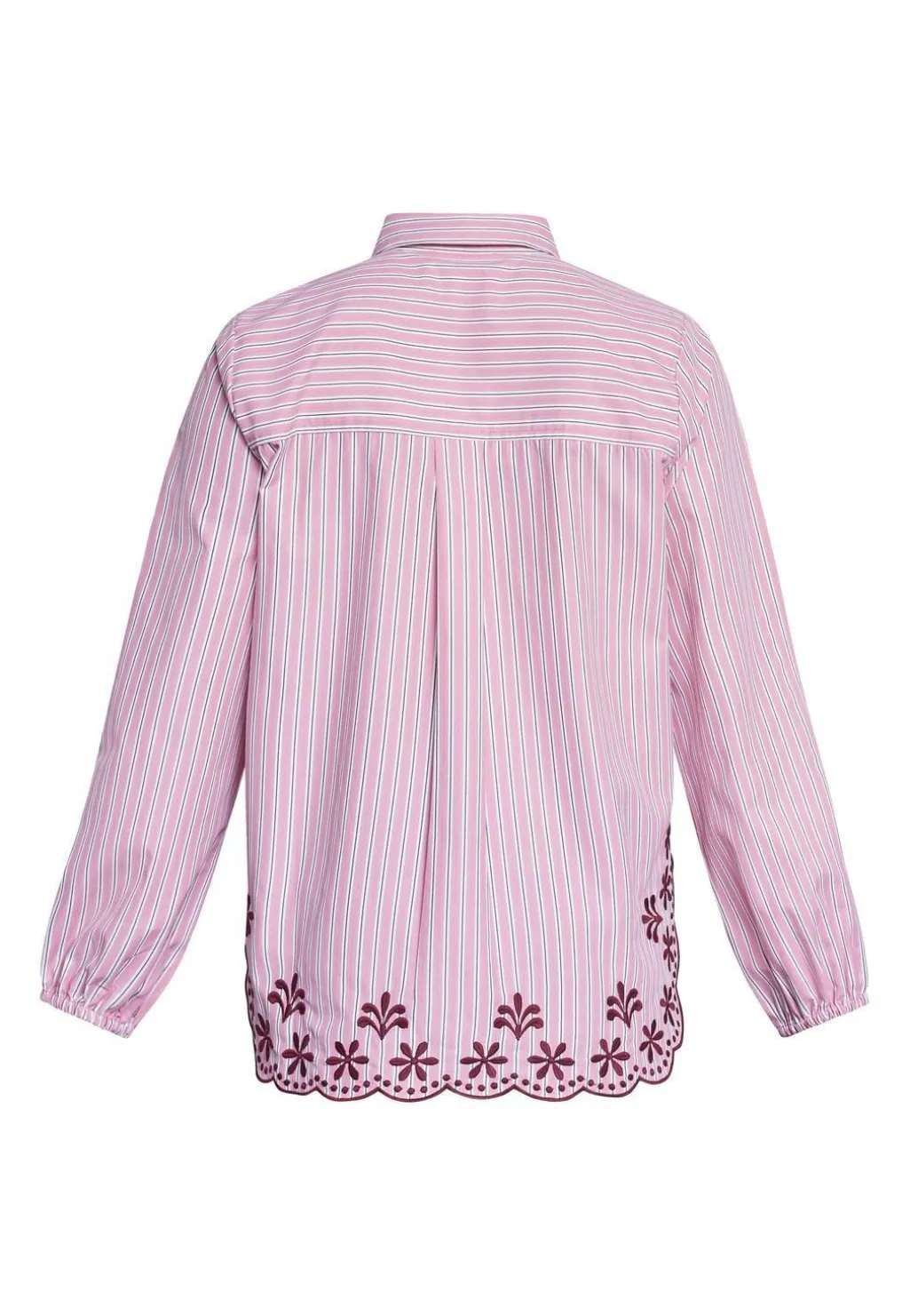 - Stribet med bordeaux blomsterbroderi