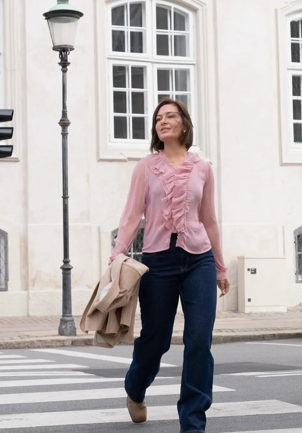- Modellen er 176 cm høj og bærer størrelse 36