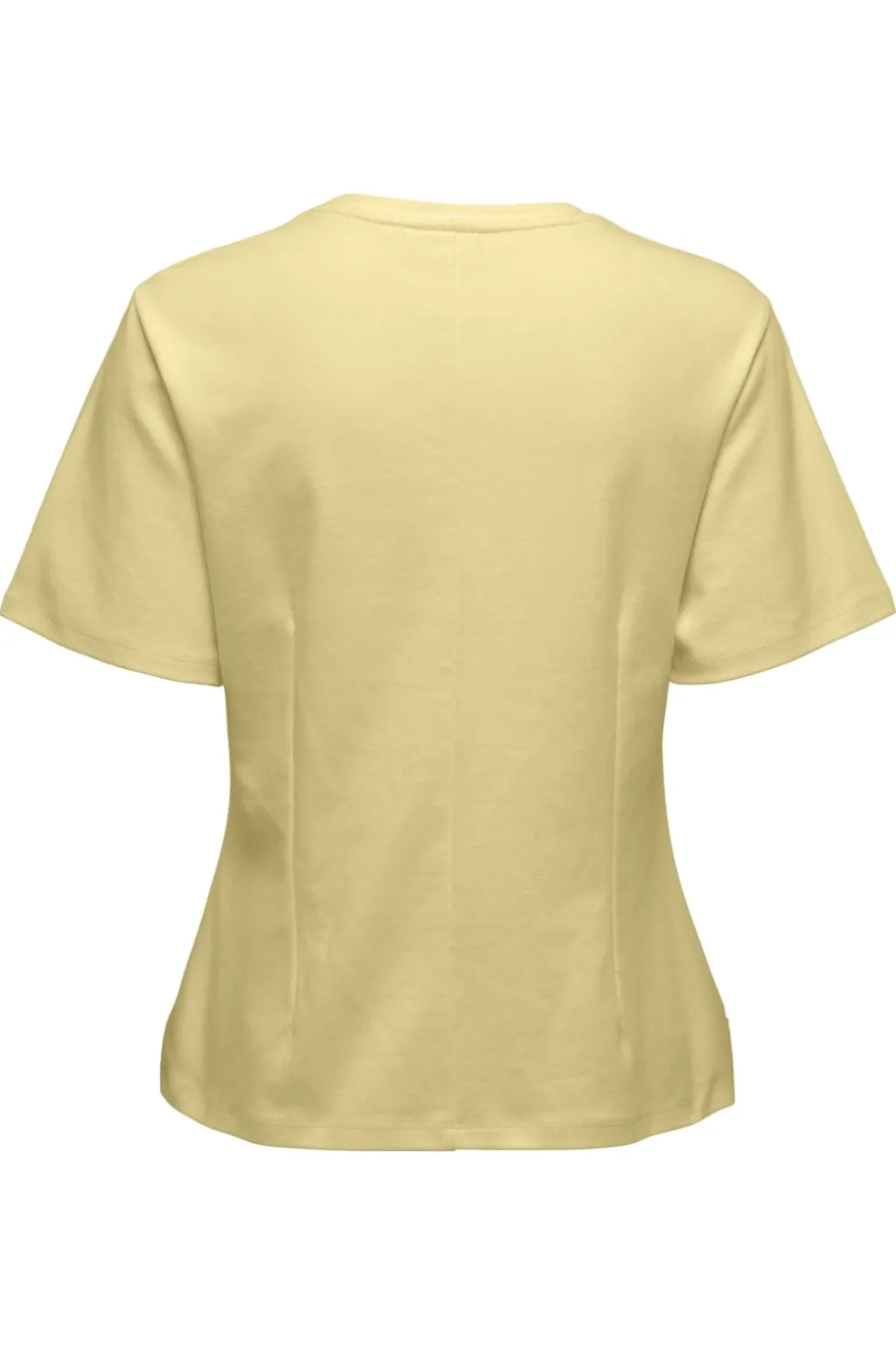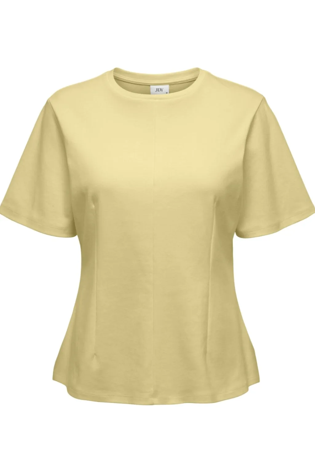 Kortærmet top fra JDY i en lys gul French Vanilla-farve. Toppen har en enkel udformning med rund hals og lige snit, der gør den nem at style til forskellige outfits.