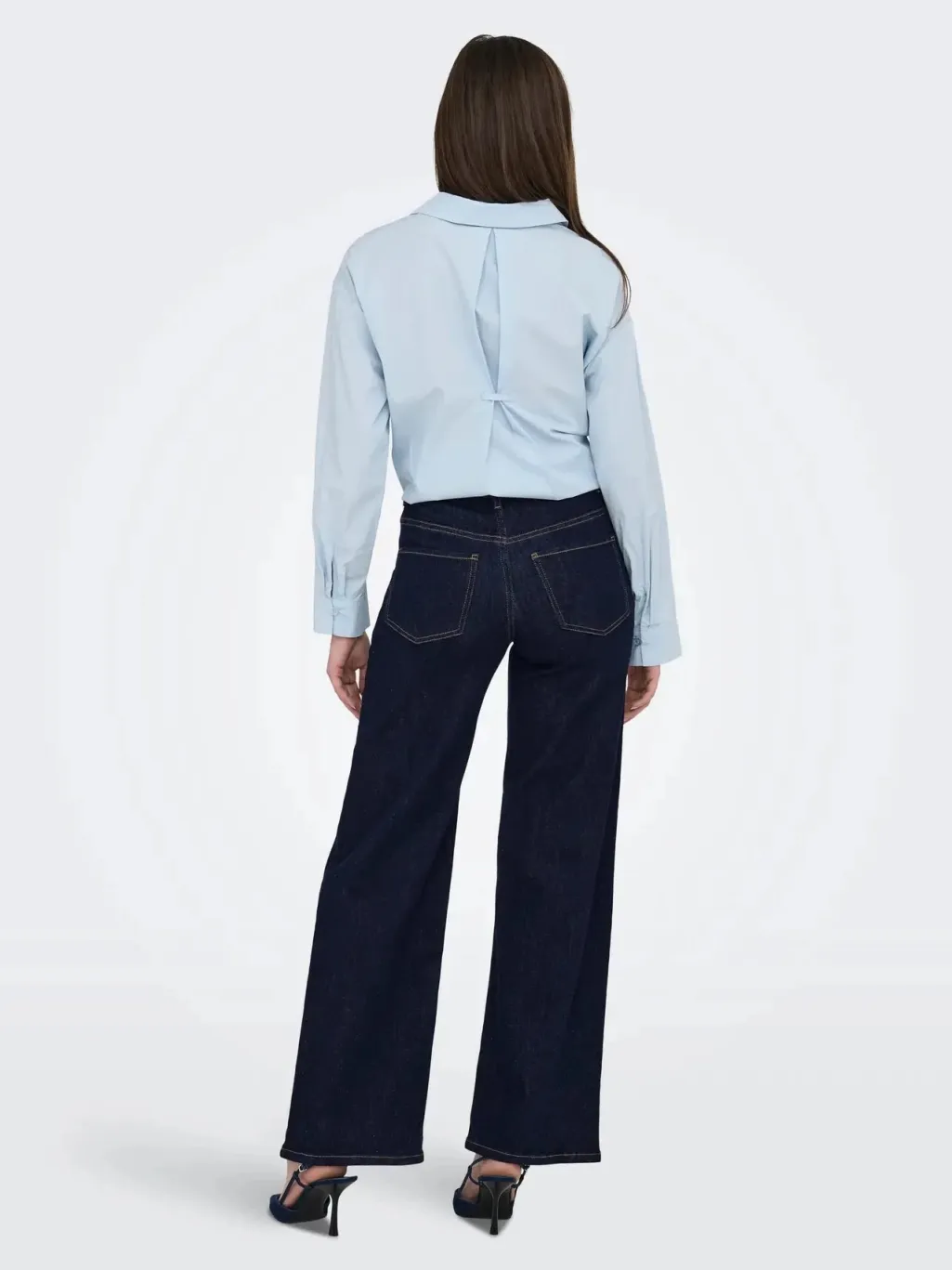 Mørkeblå denimjeans fra JDY med vide ben og høj talje. Jeansene har en løs pasform og går til anklerne.