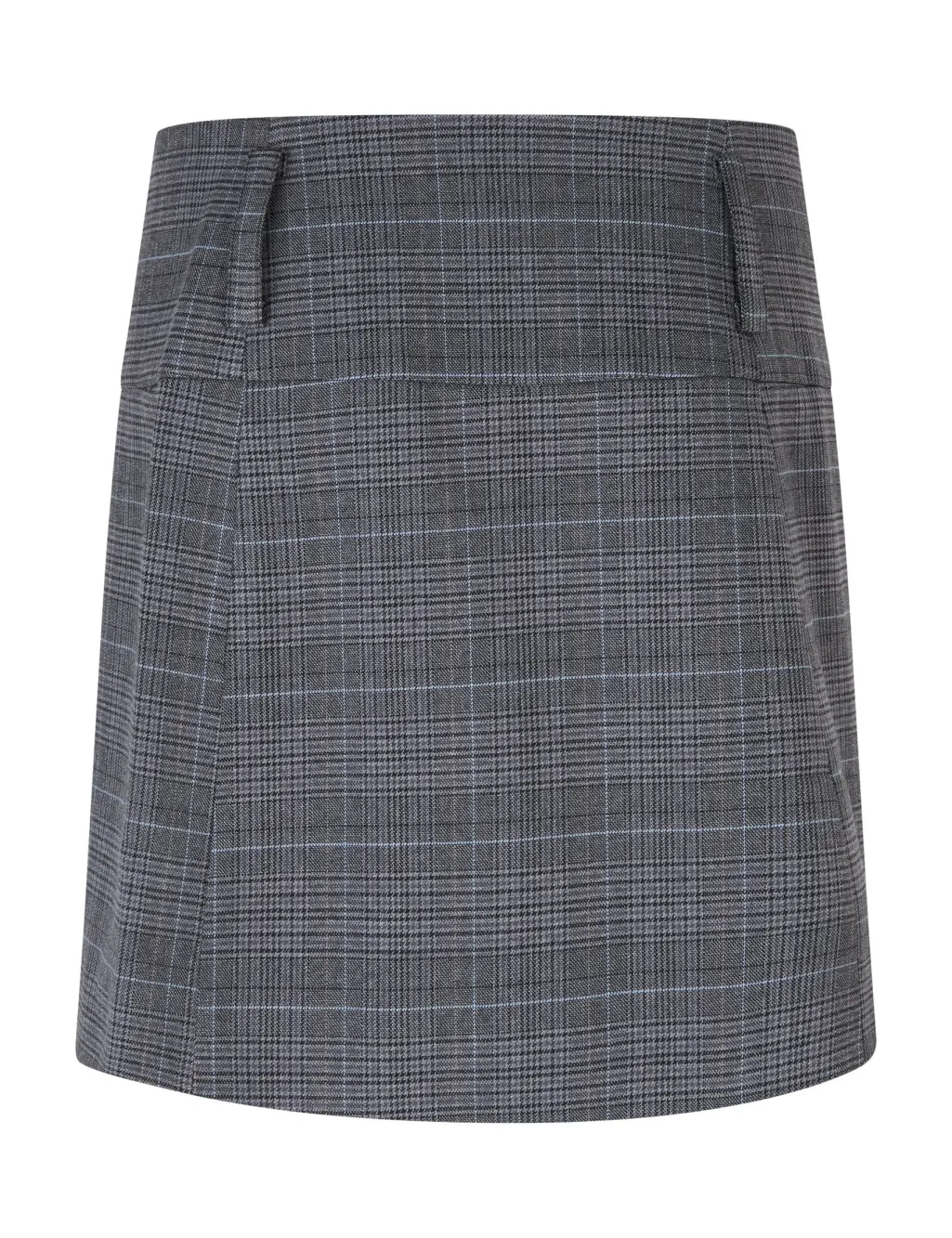 Gråternet nederdel fra MbyM med wrap-design. Nederdelen har to knapper på fronten og en længde til midt på låret.