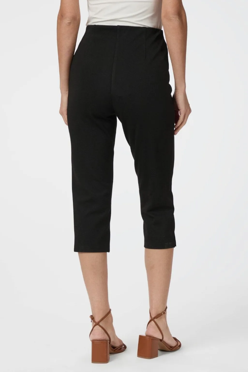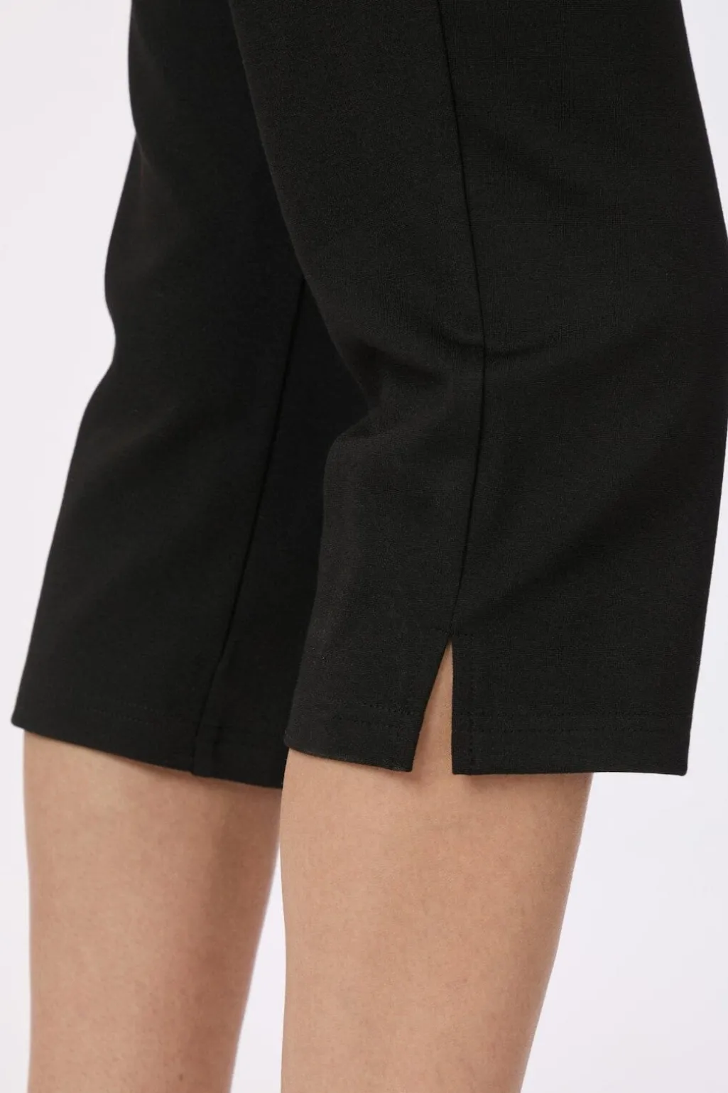 Sorte capri-bukser fra Neo Noir i strækbart materiale med elastisk talje. Bukserne har en regular fit og en lille slids i bunden af benene.