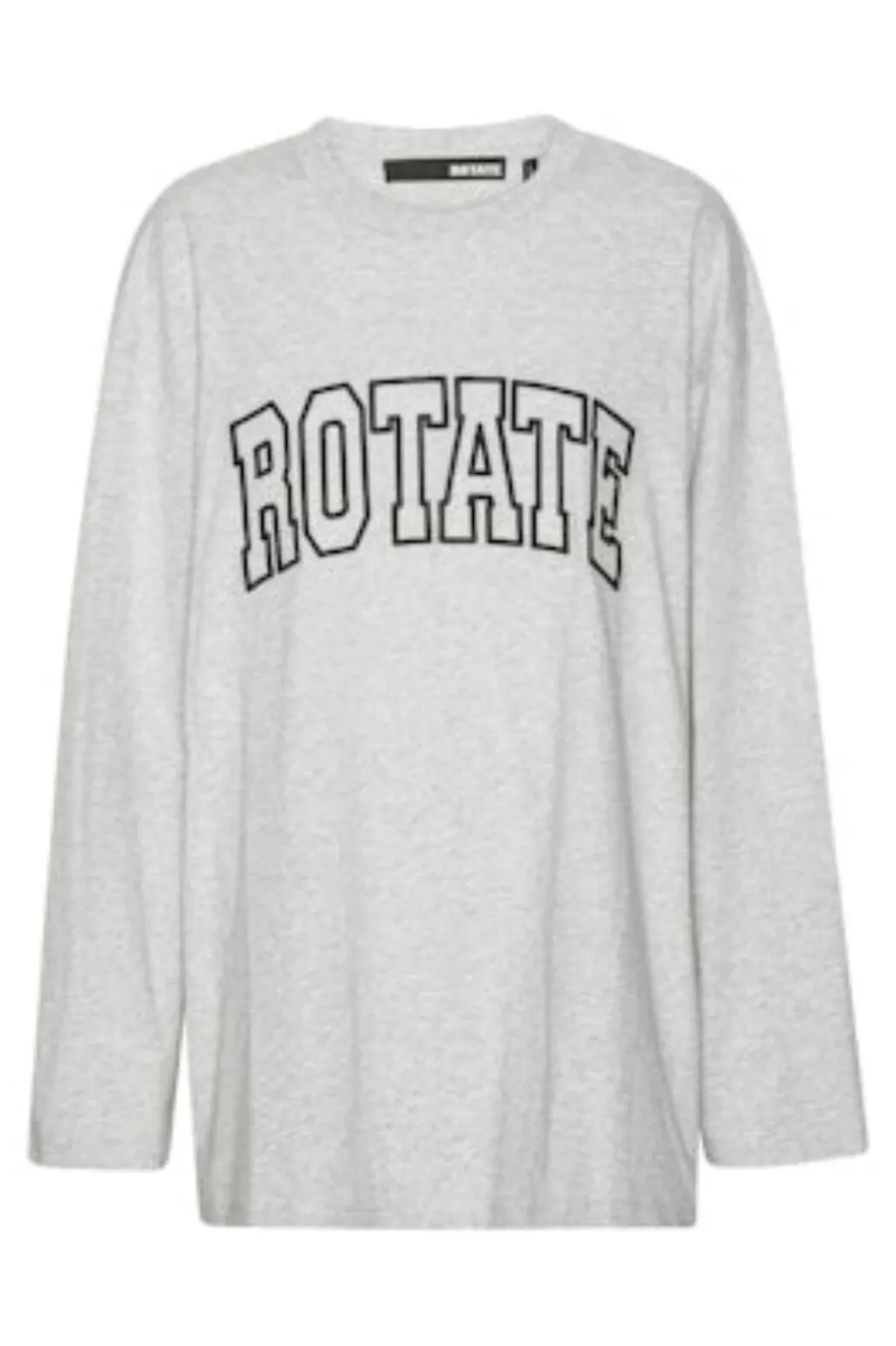 Langærmet t-shirt fra Rotate i lys grå melange. T-shirten har et stort ROTATE-print på brystet i sort.