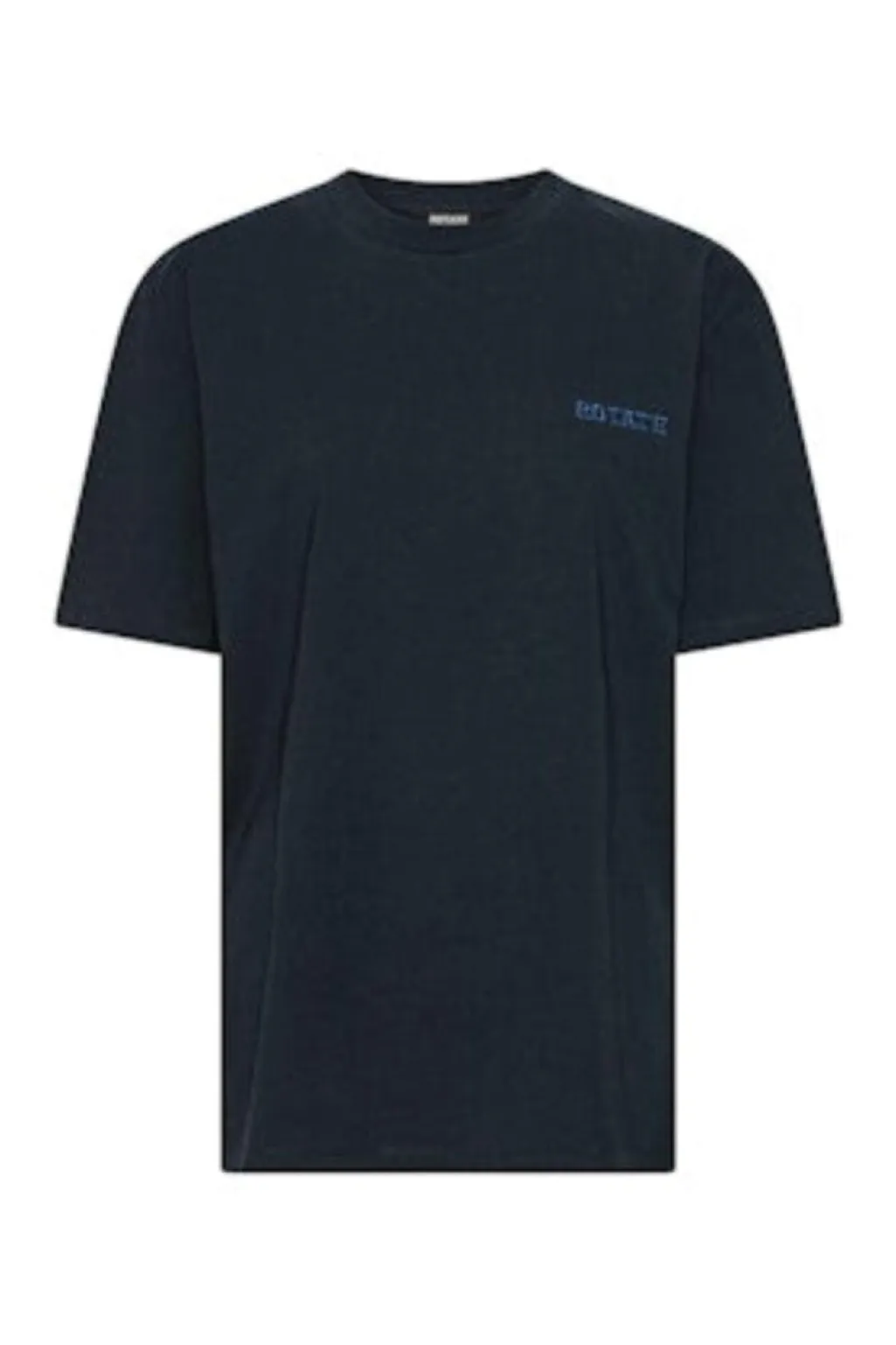 Oversized jersey T-shirt fra Rotate i mørkeblå. T-shirten har korte ærmer og en rund halsudskæring.