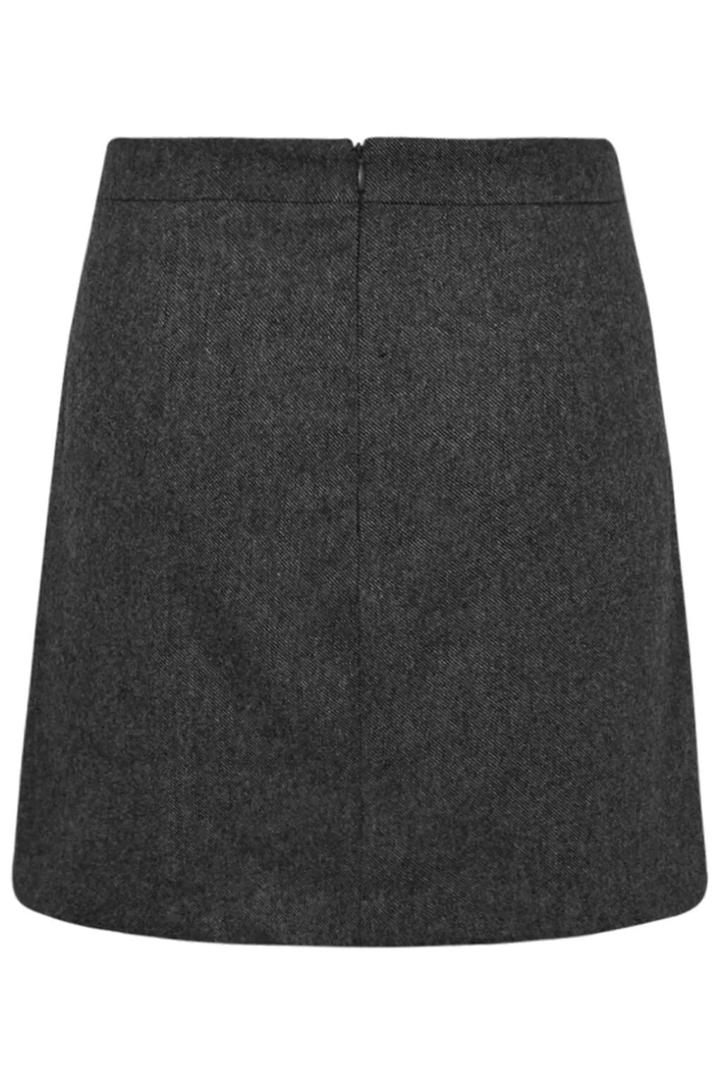 Mørkegrå nederdel fra Gossia med sildebens- og melangemønster. Nederdelen går til midt på låret og har lynlås bagpå.