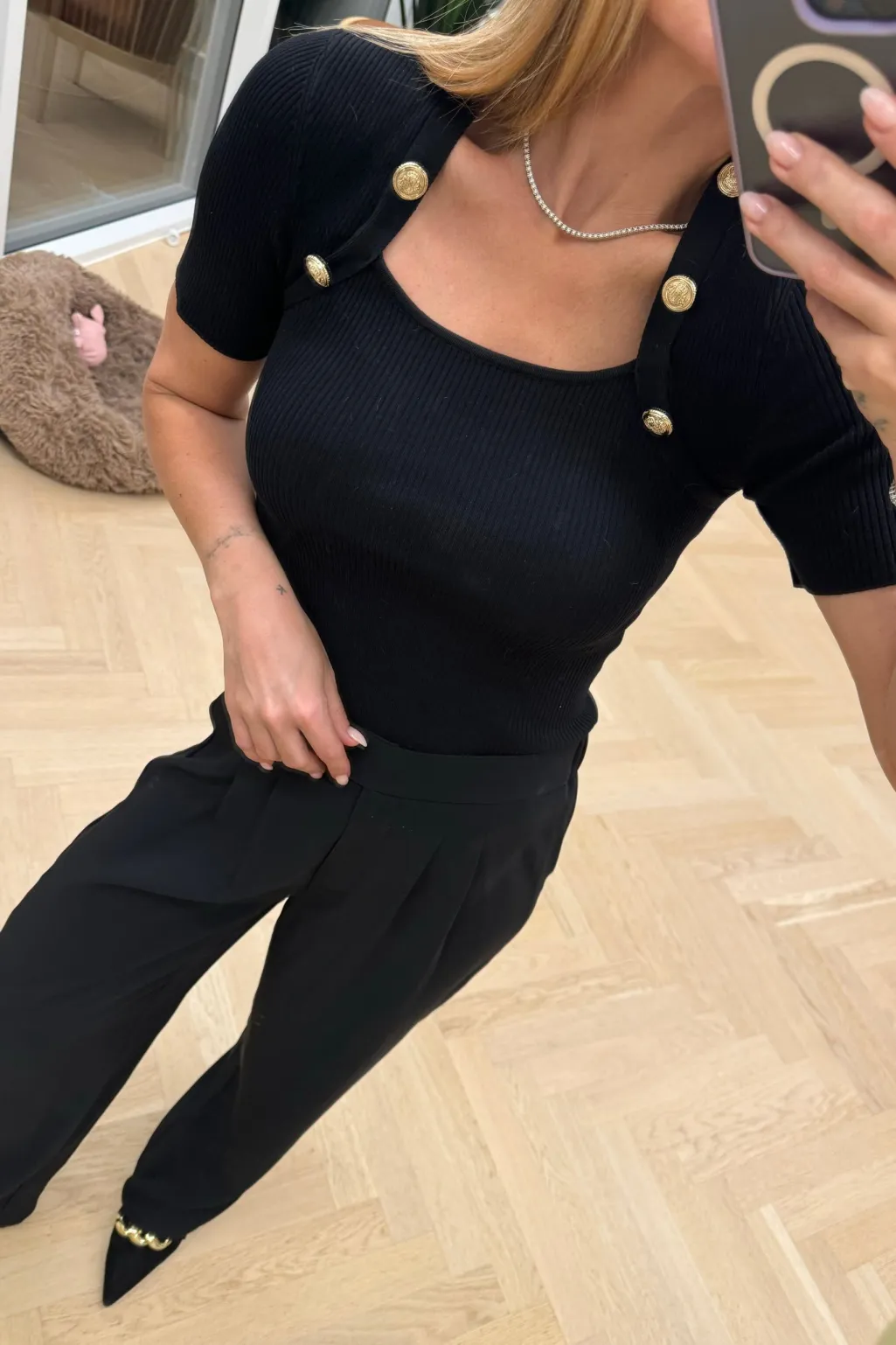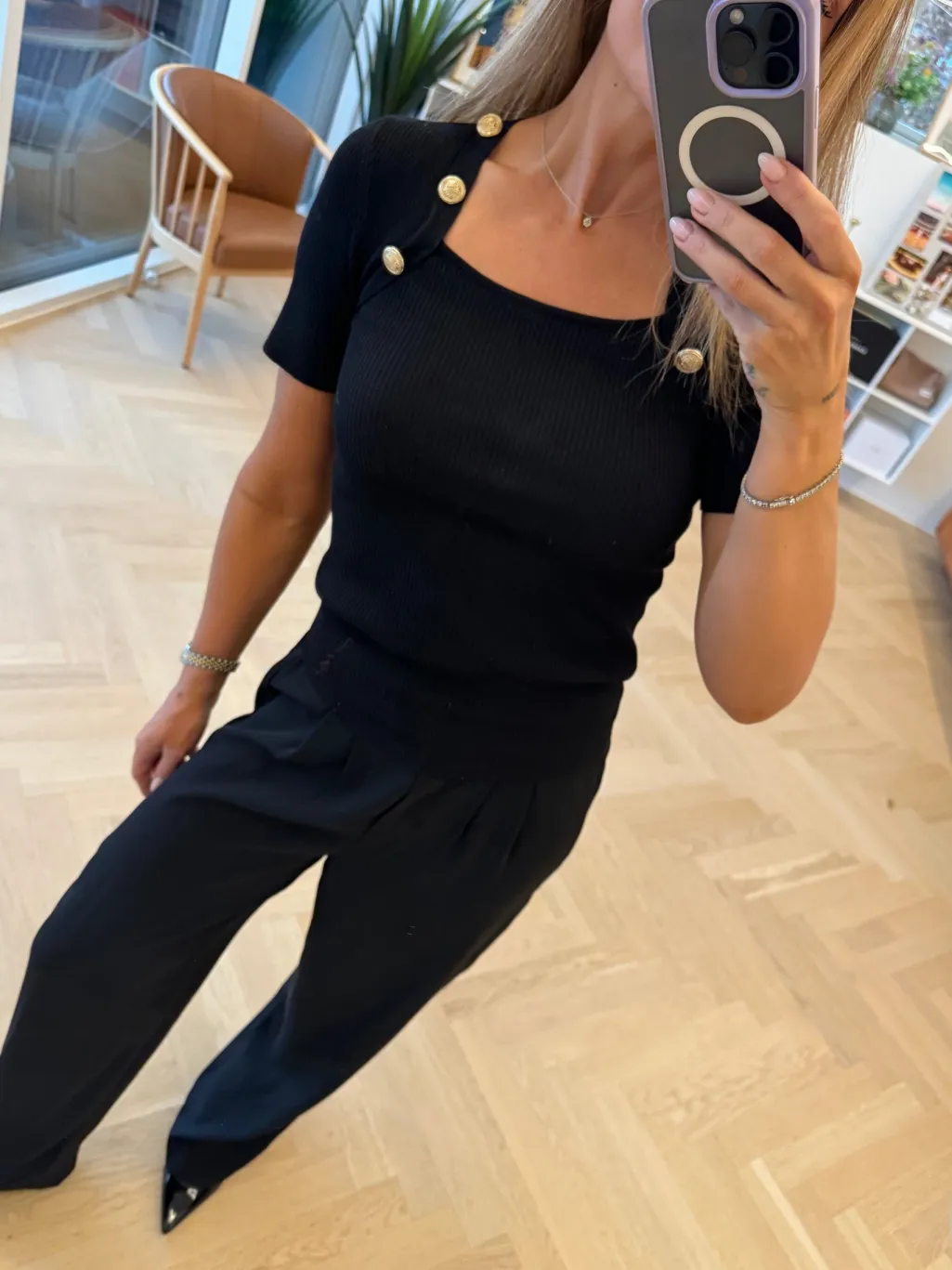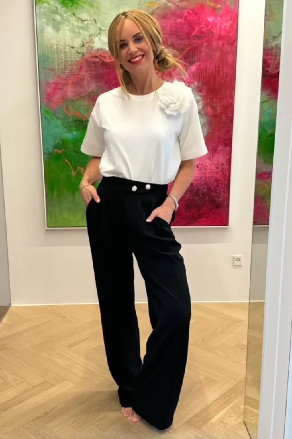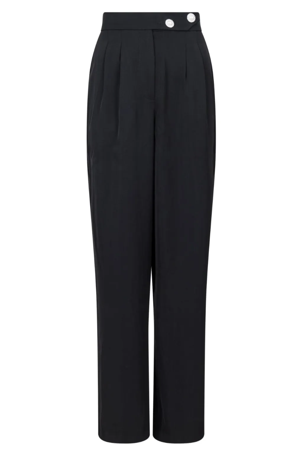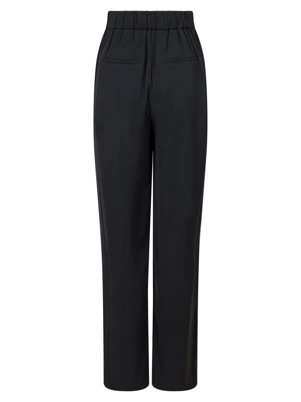 Sorte bukser fra Valentin Studio med høj talje og løs pasform. Bukserne har en gulvlang længde og praktiske lommer, der gør dem brugbare til både hverdag og fest.