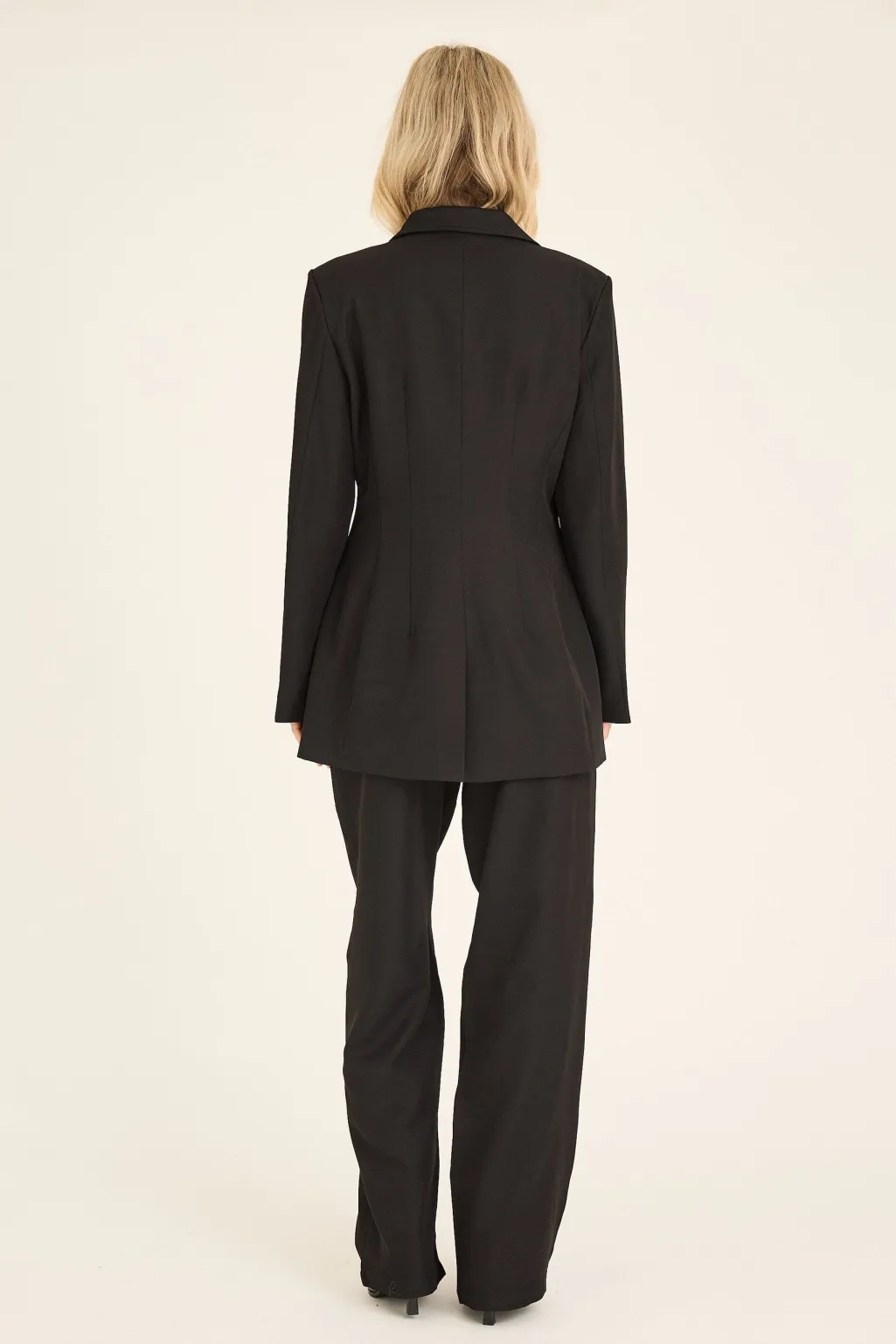 Sorte bukser fra A-View, lavet af 95 % polyester og 5 % elastan. Materialet giver strækbarhed og bevægelsesfrihed til både formelle og afslappede begivenheder.