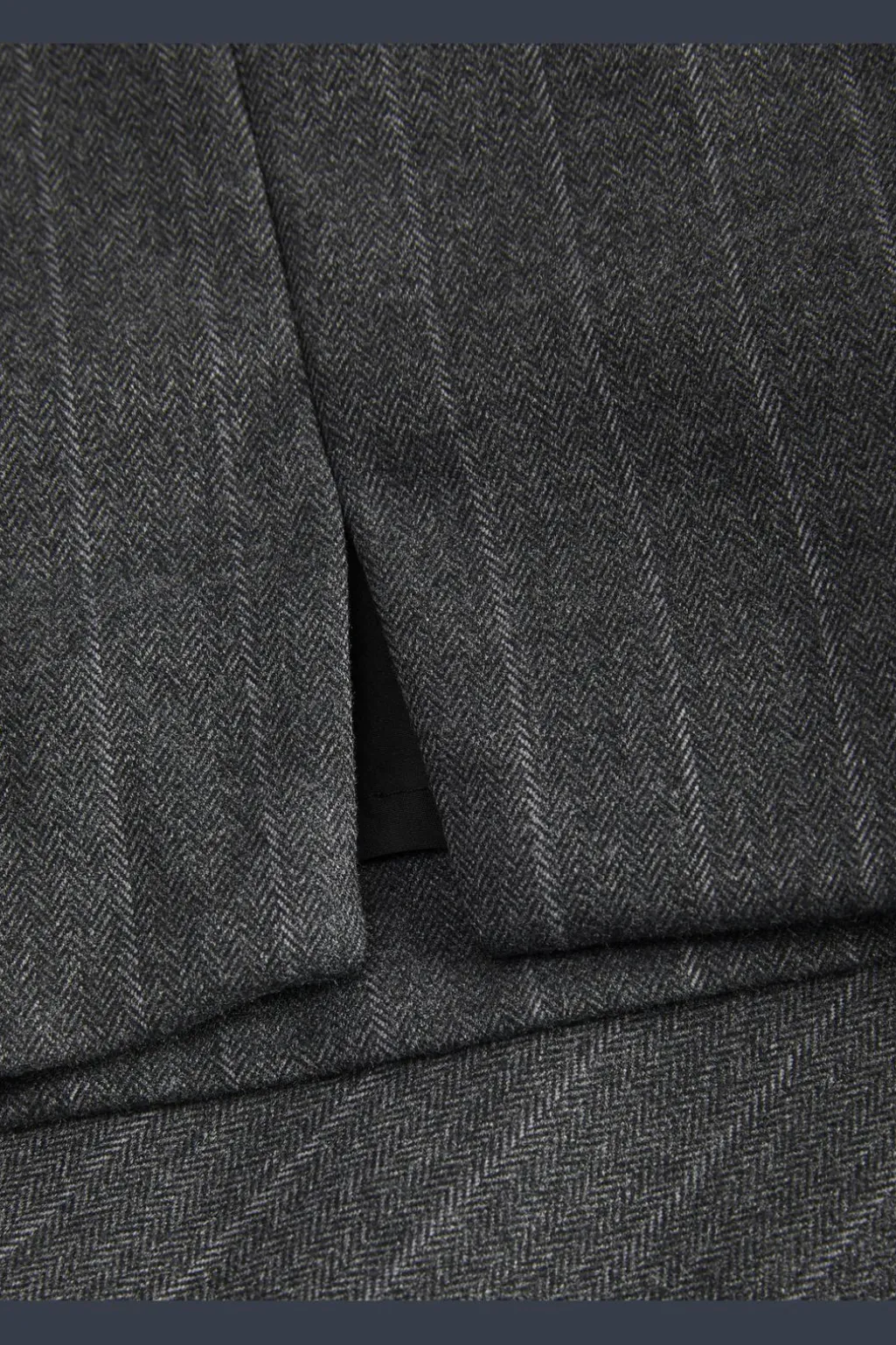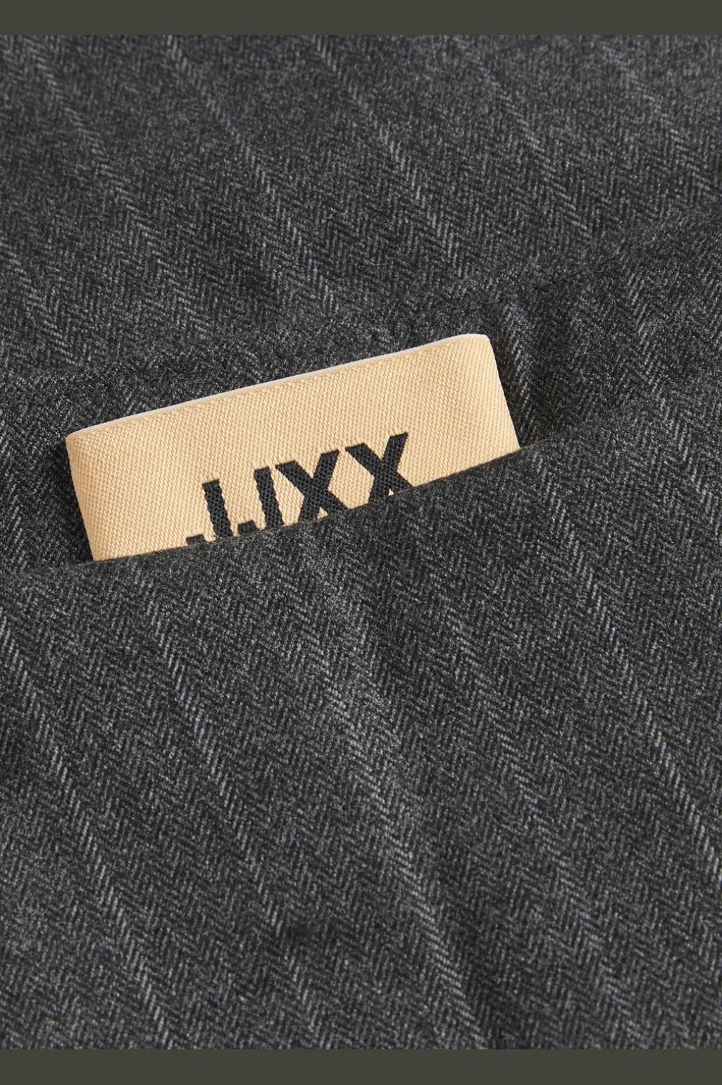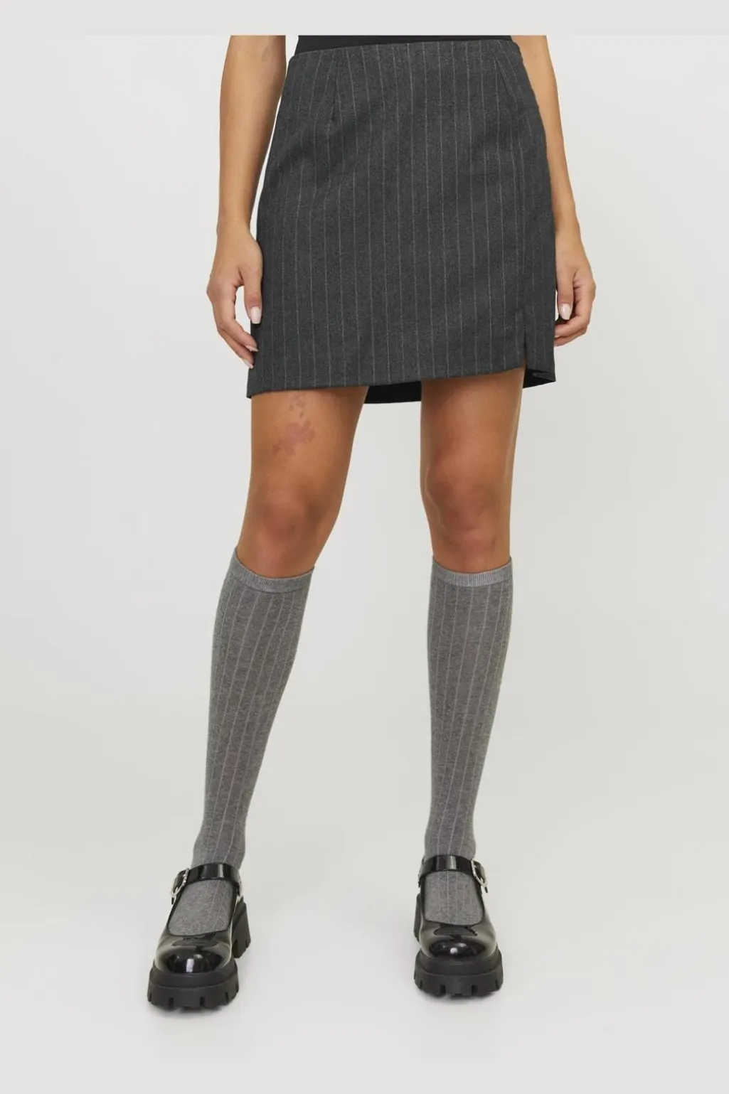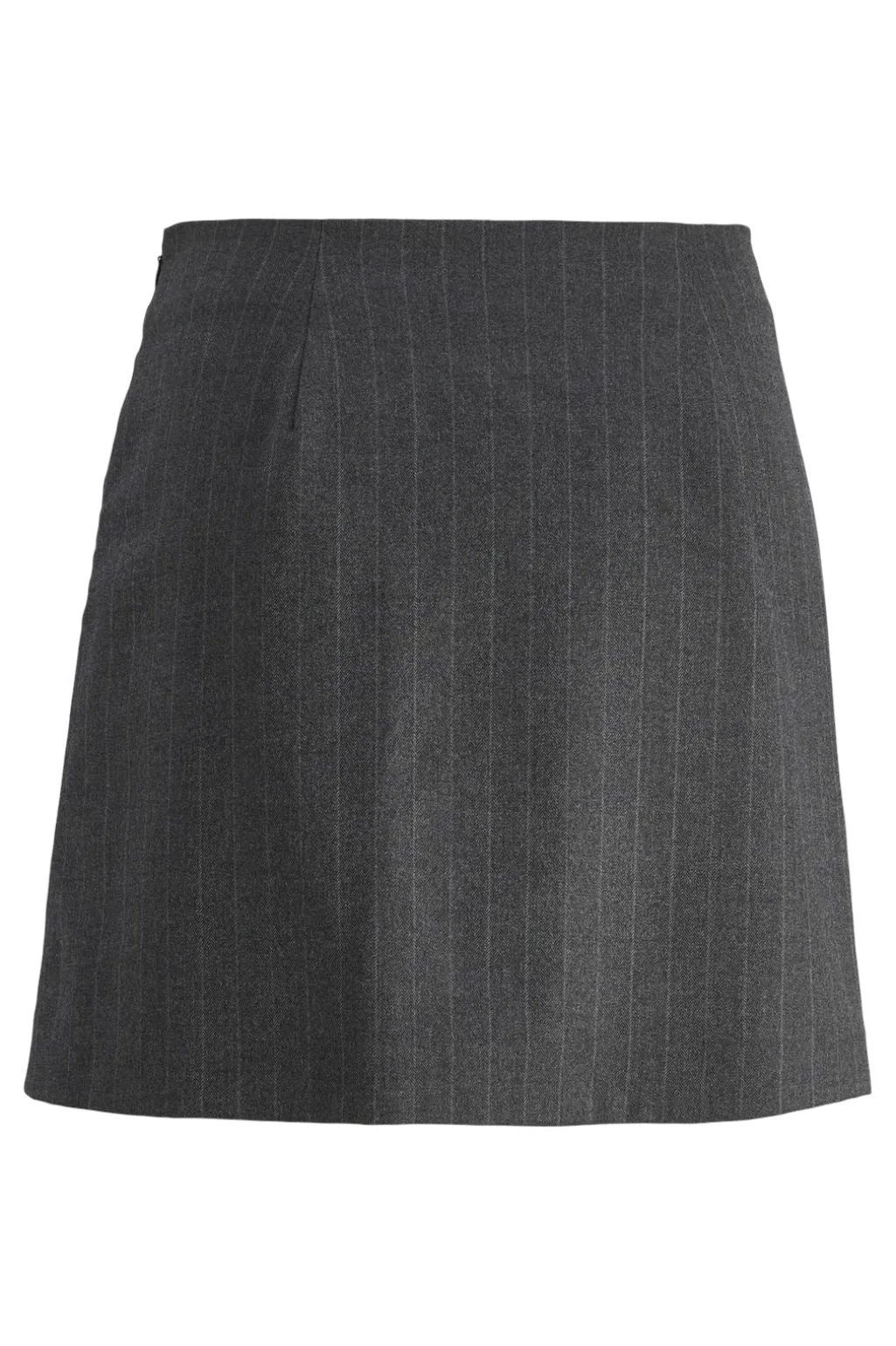 Mørkegrå nederdel fra Jjxx med lys grå striber. Den børstede overflade giver et blødt udtryk, mens pinstripe- og herringbone-mønsteret skaber et klassisk look.