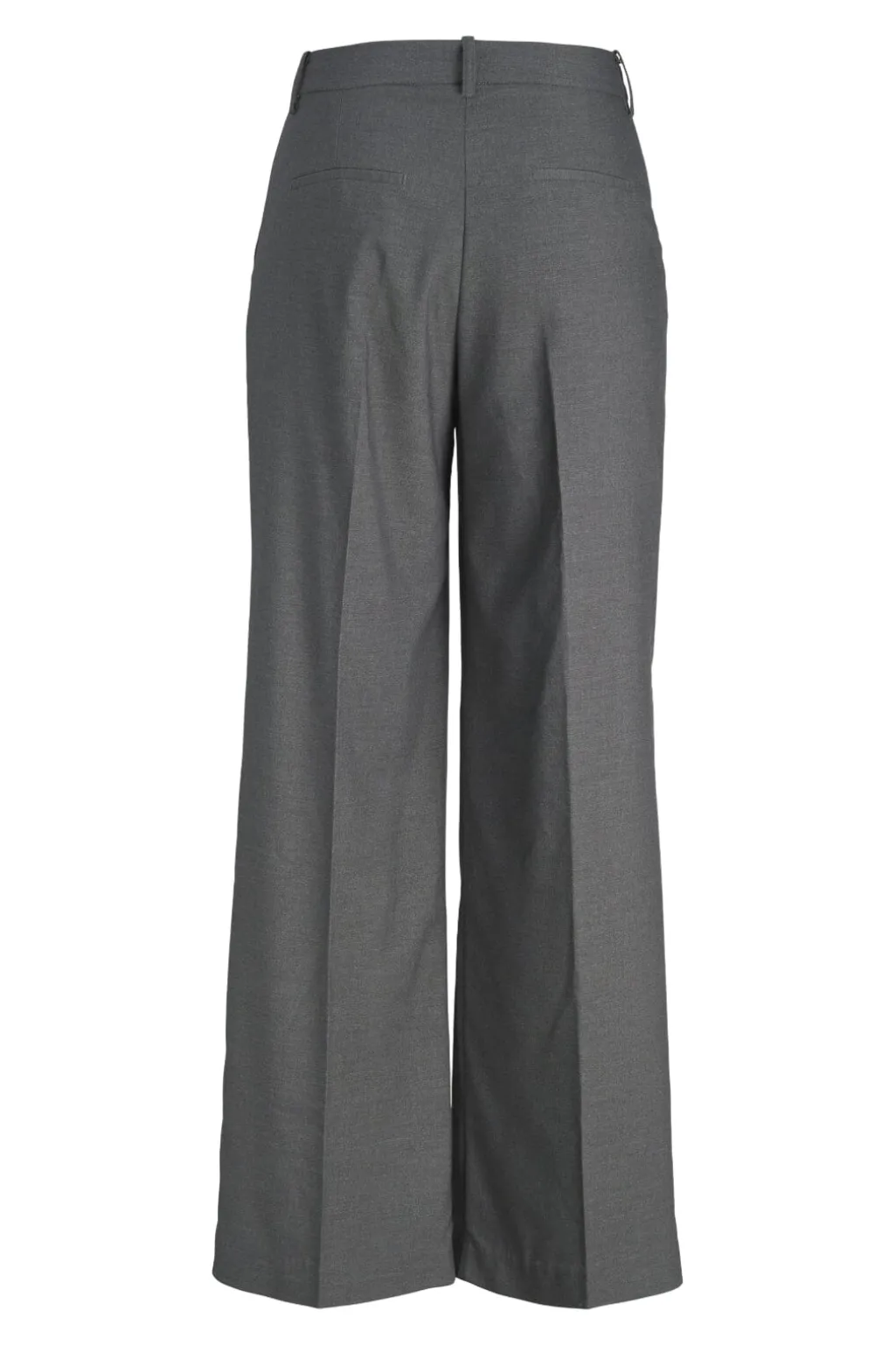 Mørkegrå bukser fra Jjxx i en slidstærk, vævet kvalitet. Bukserne har høj talje og wide leg-fit med lynlåslukning. De passer til både afslappede og formelle anledninger.
