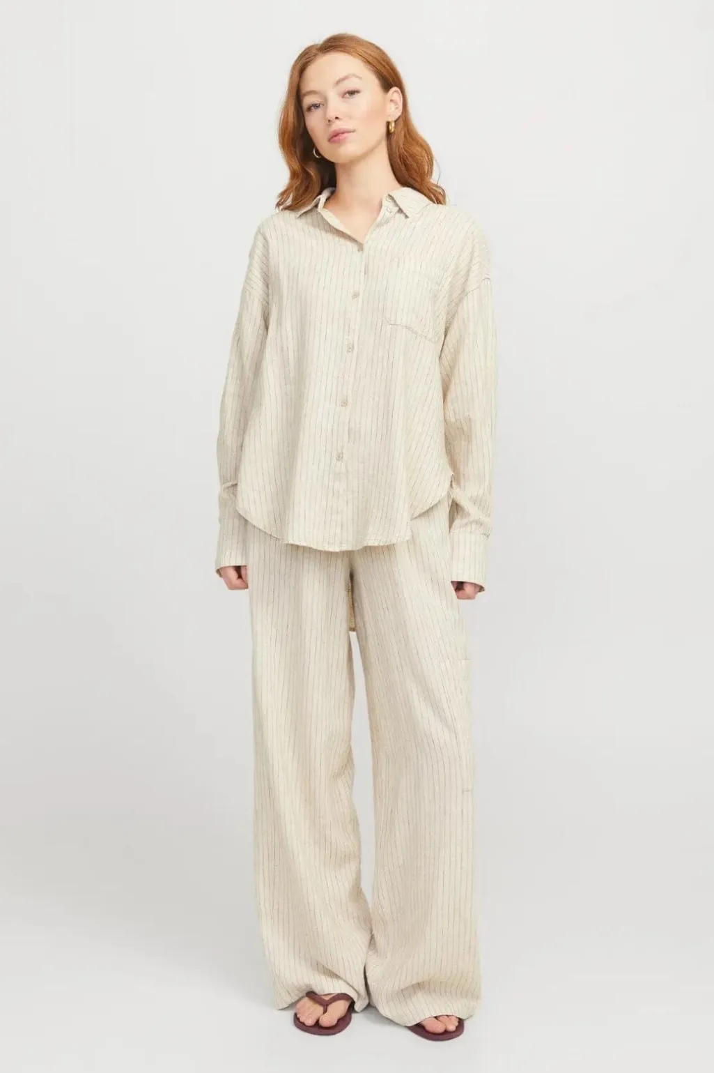 Grå skjorte fra Jjxx med nålestriber. Skjorten har en oversized pasform med klassisk skjortekrave og lange ærmer. Knaplukning foran og dekorative syninger giver skjorten et afrundet udtryk.