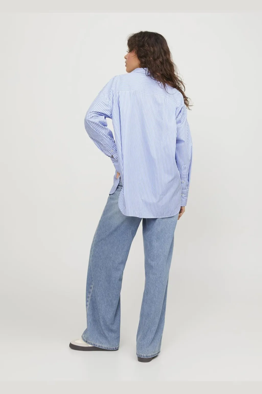 Stribet skjorte fra Jjxx i blå og hvide striber. En klassisk skjorte med krave og lange ærmer, brystlomme og buet kant forneden. Fremstillet i poplin med en afslappet pasform.
