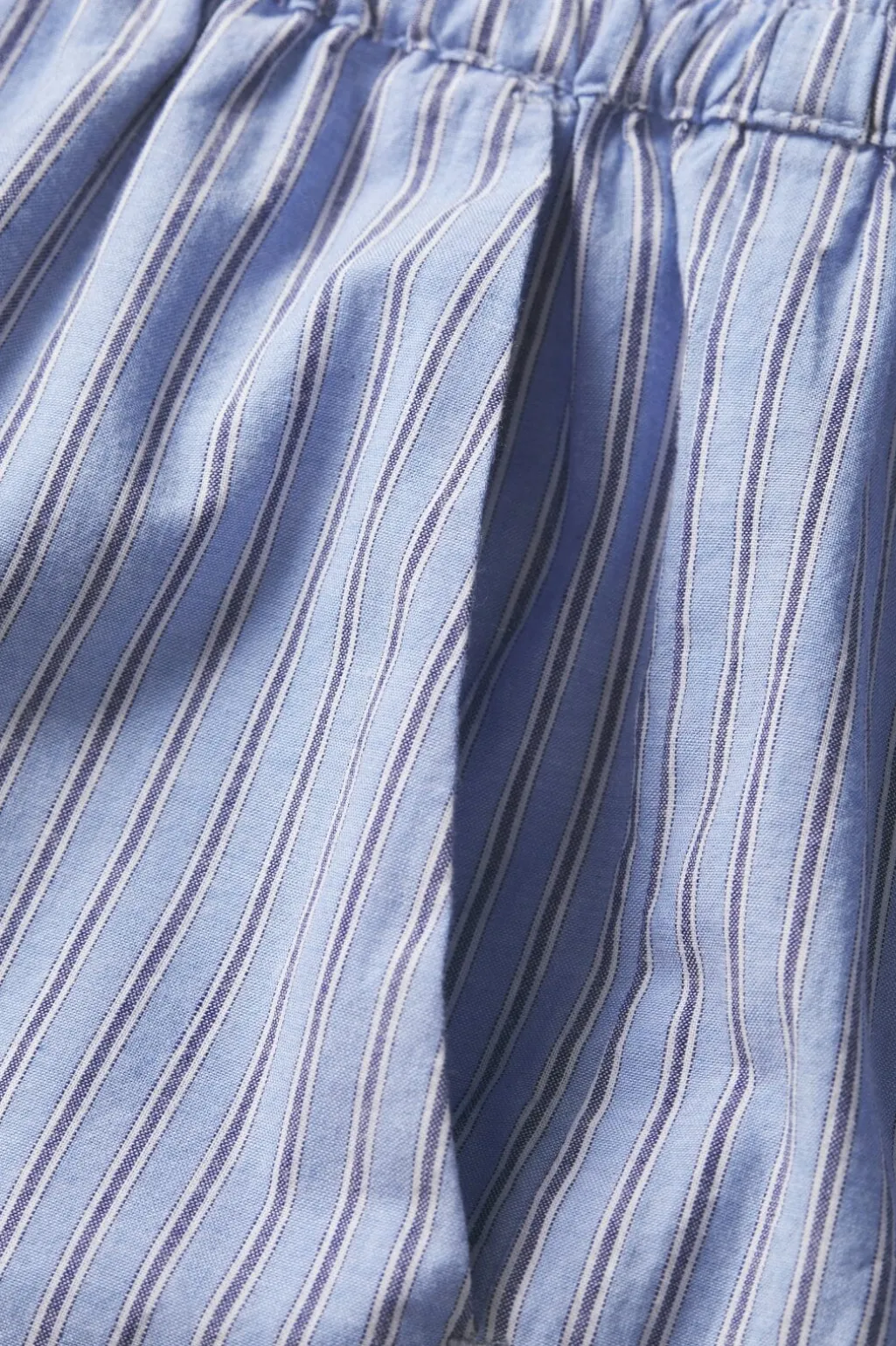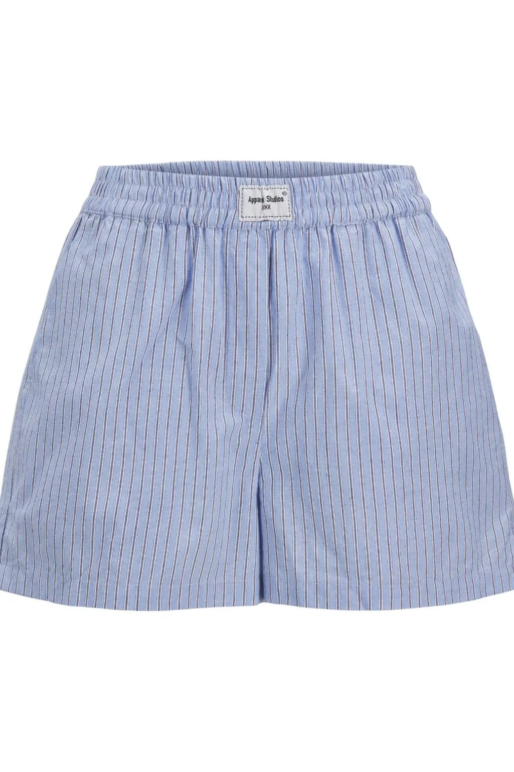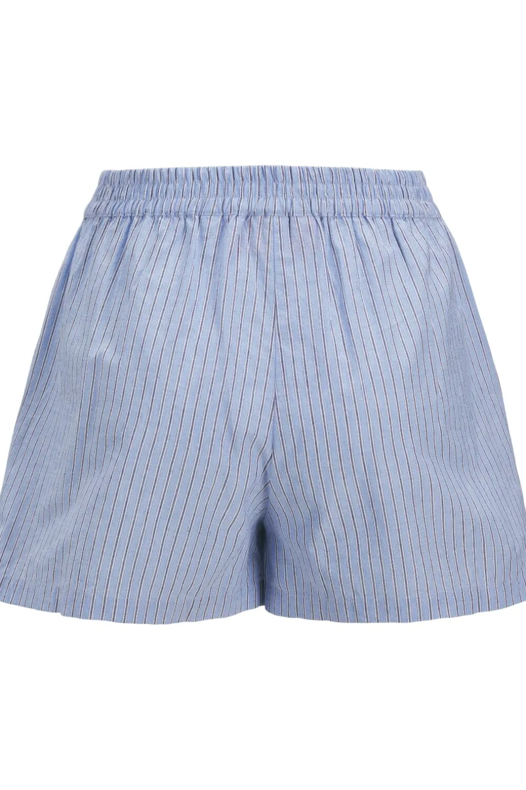 Stribede shorts fra Jjxx i lyseblå med hvide og røde striber. Shortsene har høj talje og en løs pasform med flæsedetaljer.