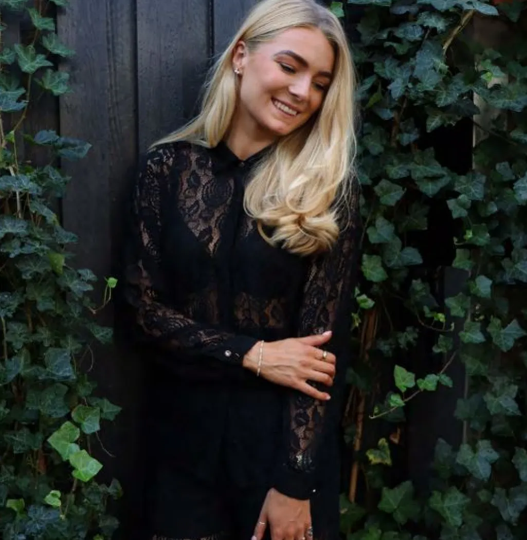 Sort skjorte fra Liberte med blonder og et blomstermønster. Skjorten har lange ærmer og en skjortekrave med knaplukning.