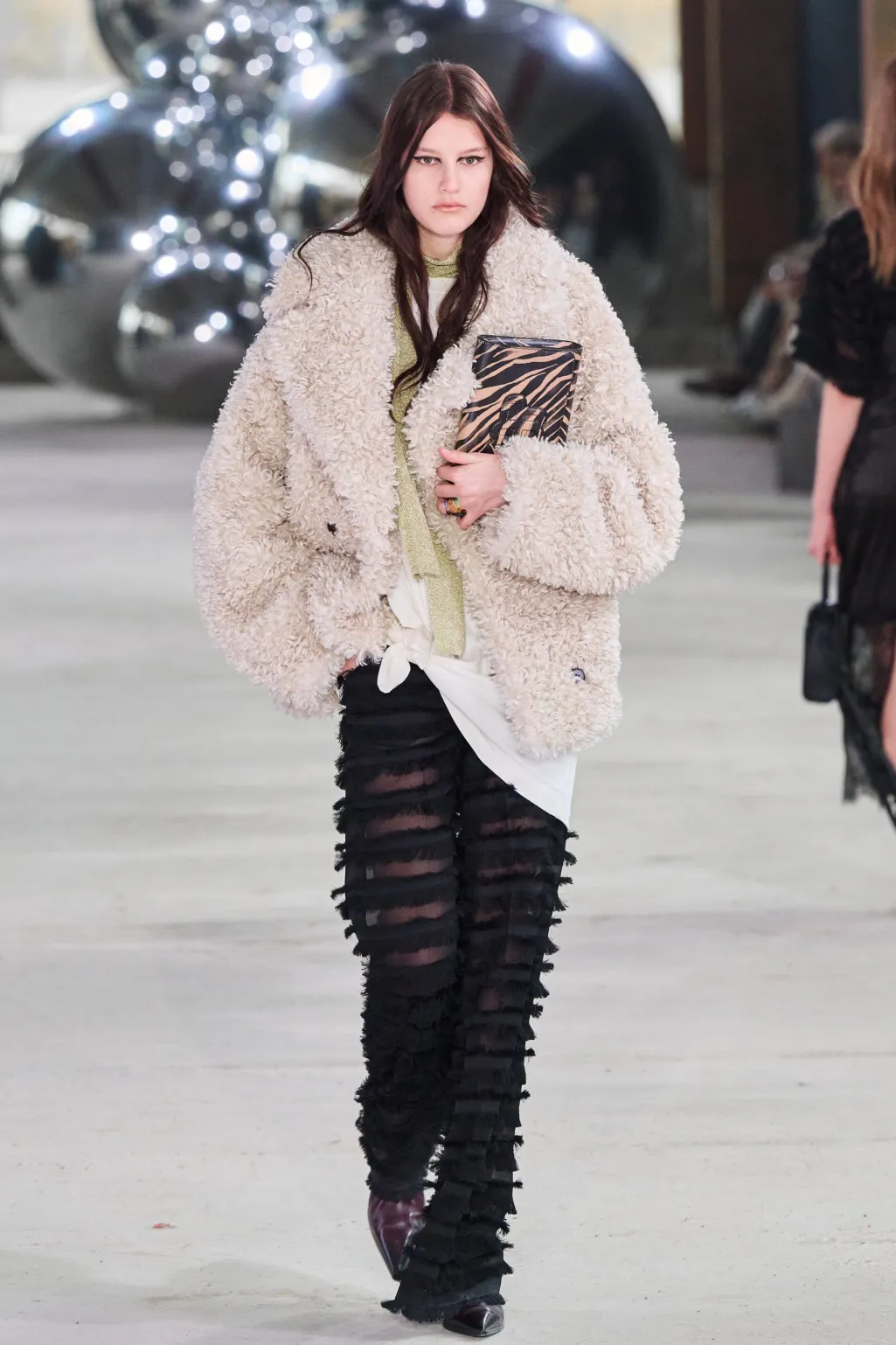 - Modellen er 177 cm høj og bærer størrelse 36