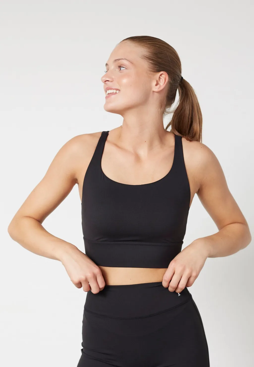 Sort top fra Sisters Point med tynde spaghettistropper og rund halsudskæring. Toppen har en tætsiddende pasform i sort.