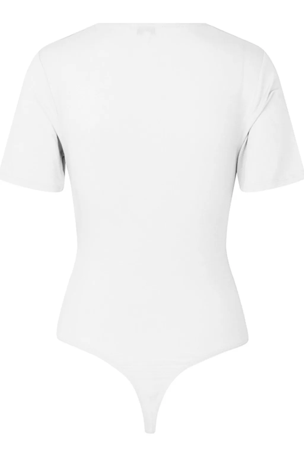 Hvid bodysuit fra MbyM med omslagsdesign og korte ærmer. Bodysuiten har en V-halsudskæring og flæsedetaljer, der giver et blødt udtryk.