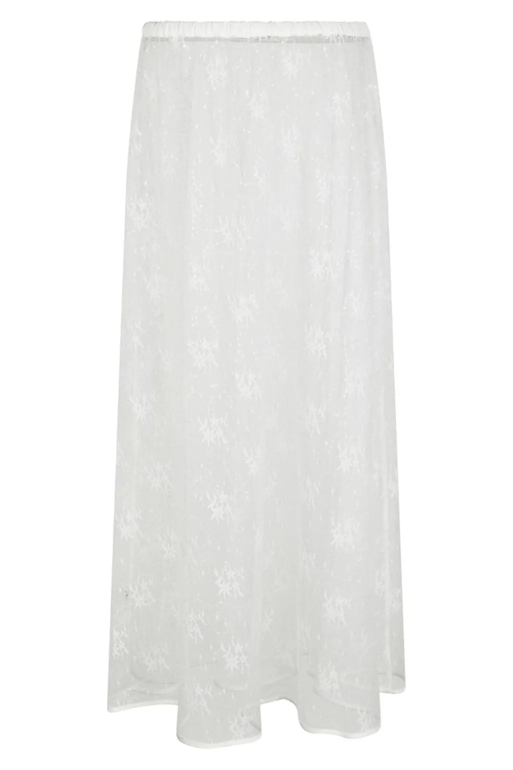 Hvid nederdel fra Neo Noir med blondemønster og pailletter. Den gennemsigtige nederdel har et blomstermønster og går til anklerne.