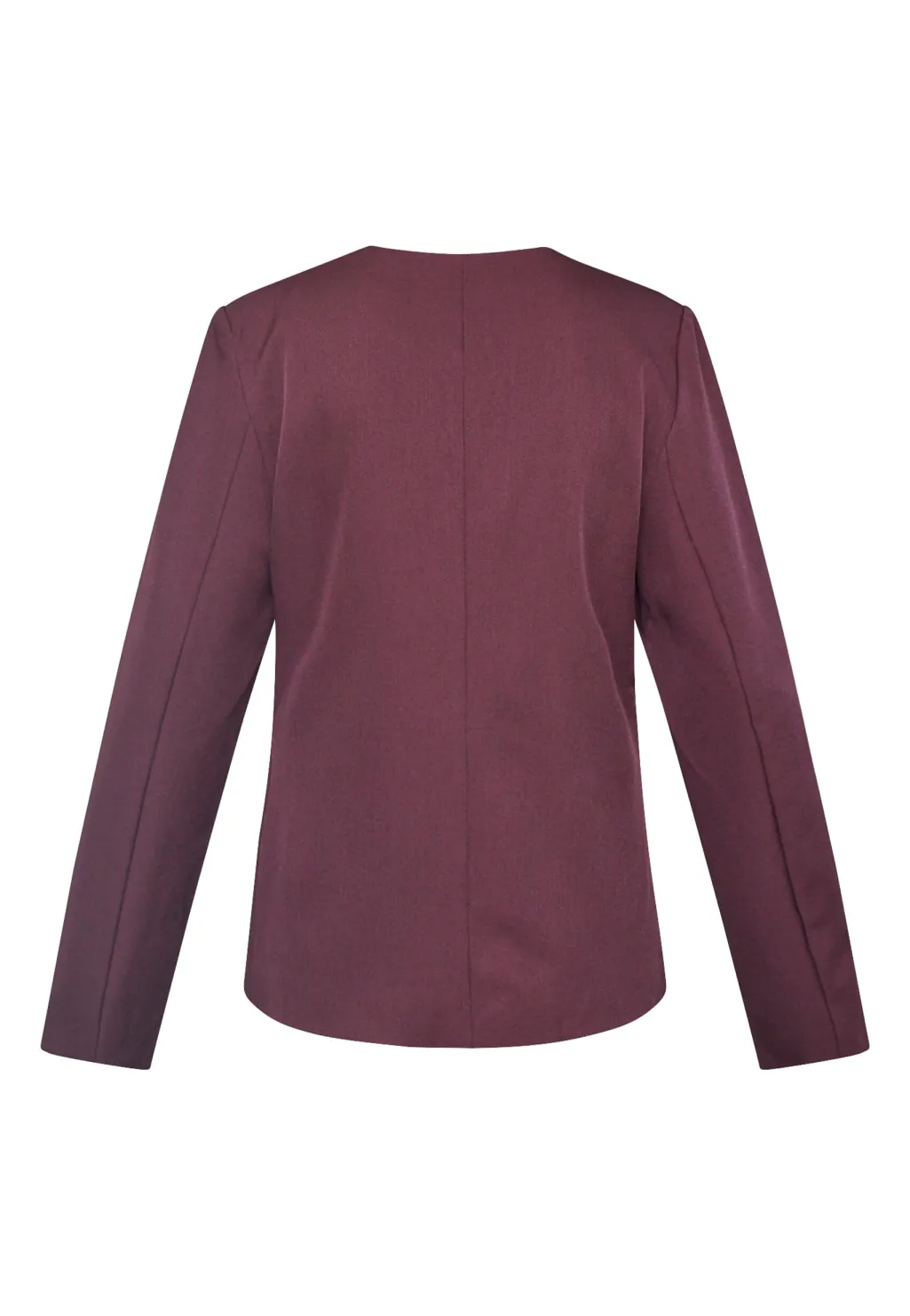 Blazer fra Love & Divine i mørk bordeaux. Fremstillet i 96% polyester og 4% elastan, har den lange ærmer og en rund halsudskæring.