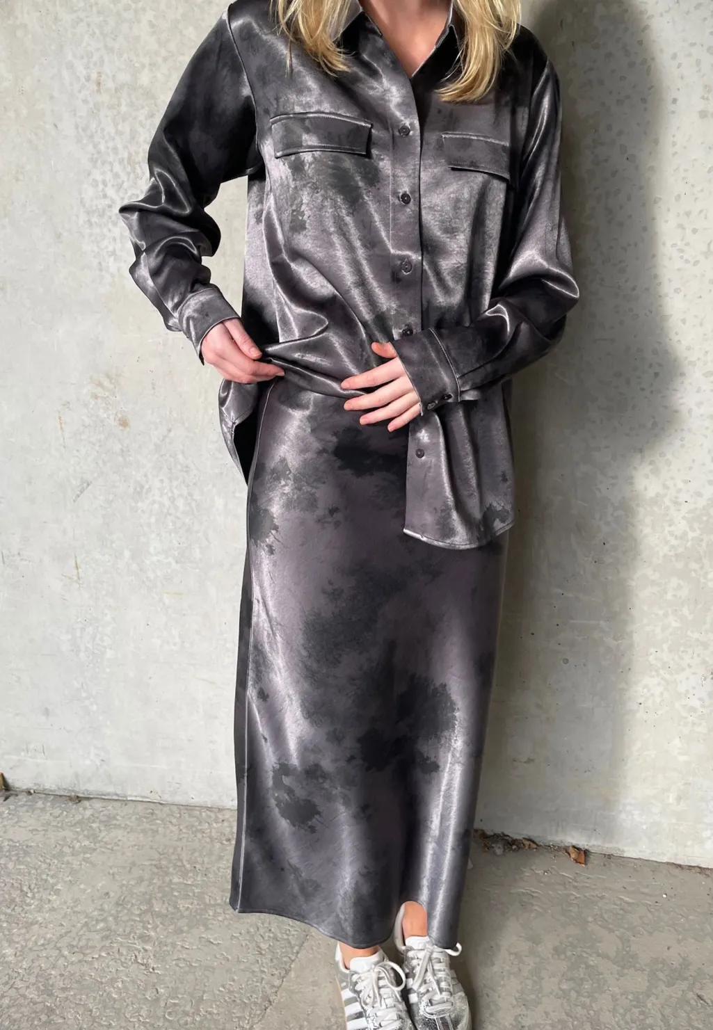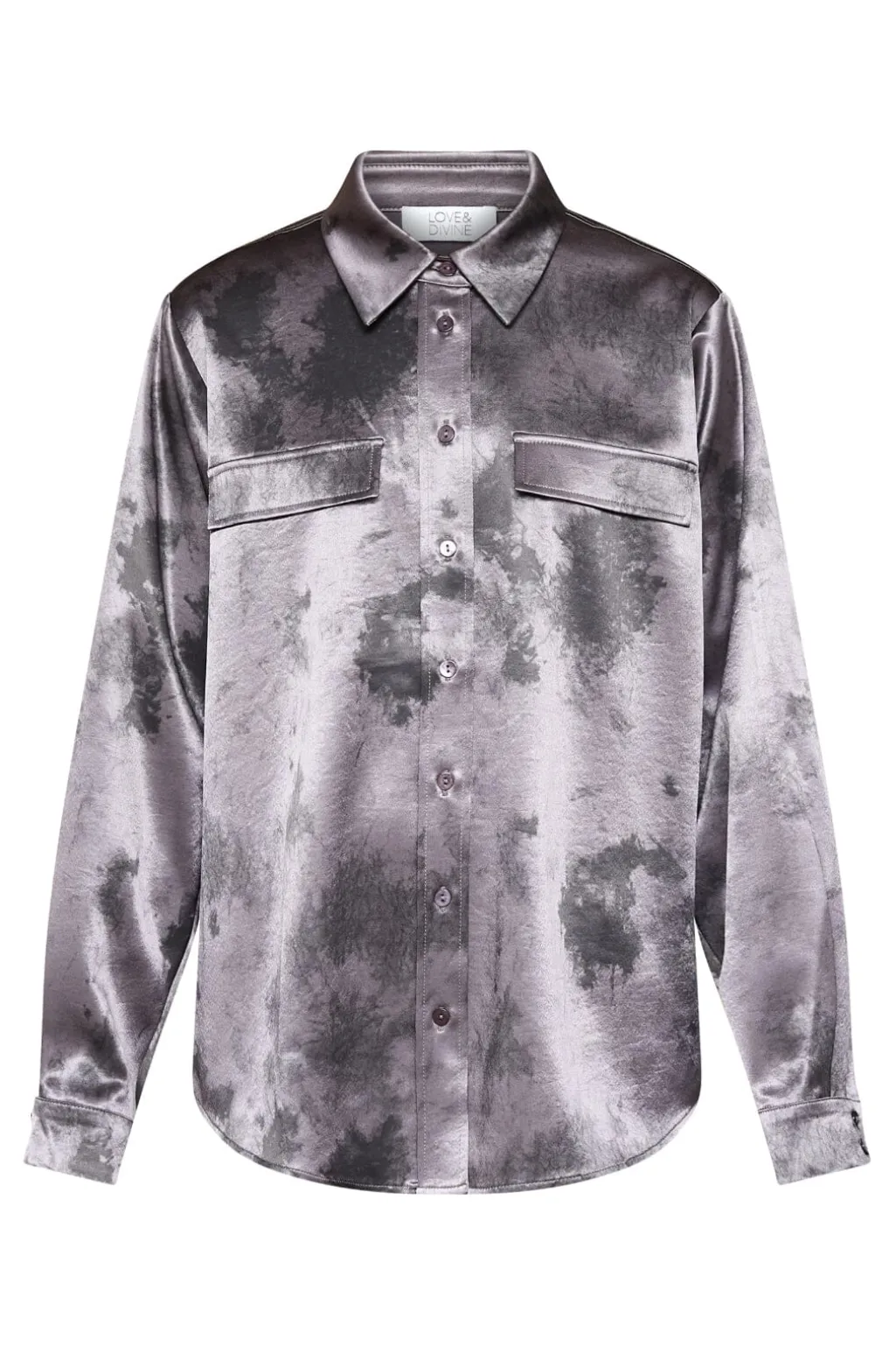 Skjorte fra Love & Divine i grå med et skinnende marmoreret print. Skjorten har en oversized pasform og klassisk skjortekrave.