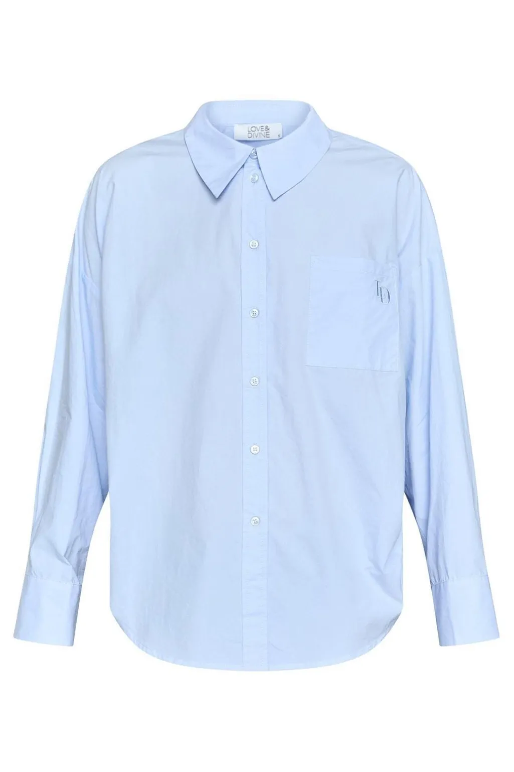 Lyseblå skjorte fra Love & Divine, lavet af 100 % bomuld. Skjorten har en klassisk krave og knaplukning.