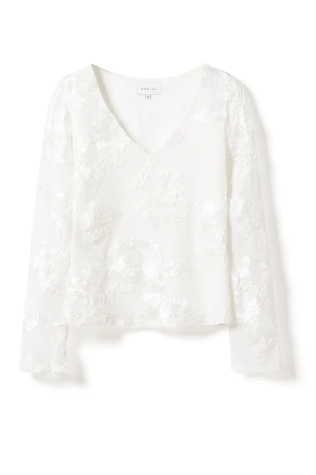 Hvid top fra Noella med lange ærmer og V-hals. Toppen passer til formelle lejligheder og festlige anledninger.
