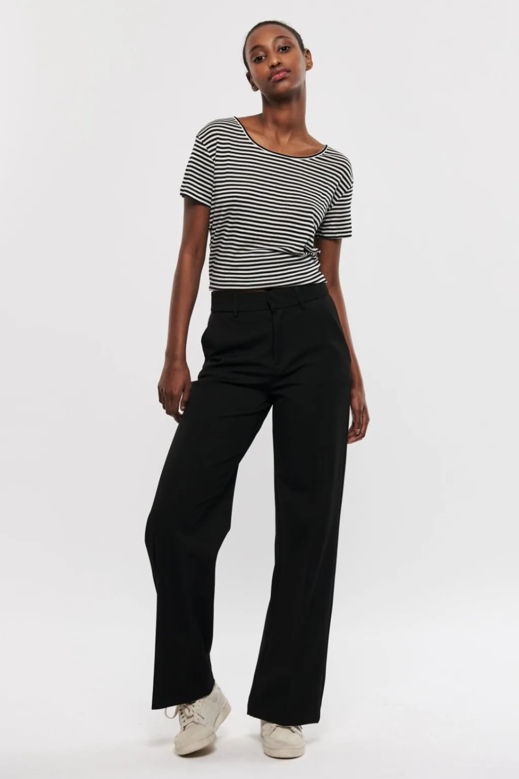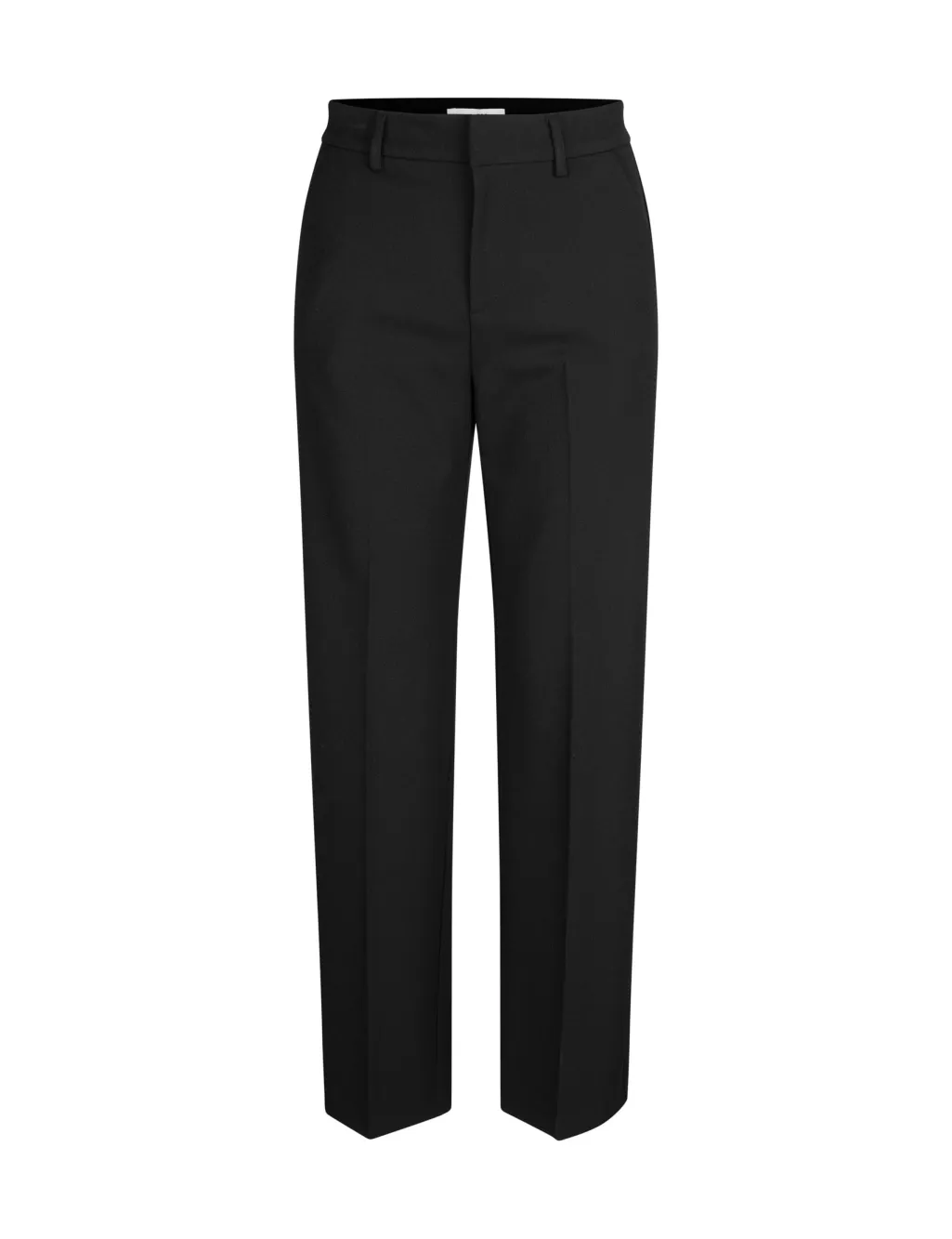Sorte bukser fra MbyM med bredde ben og frontfold. Bukserne har en ankellængde og lukkes med både lynlås og knapper. De rene linjer skaber et professionelt udtryk.