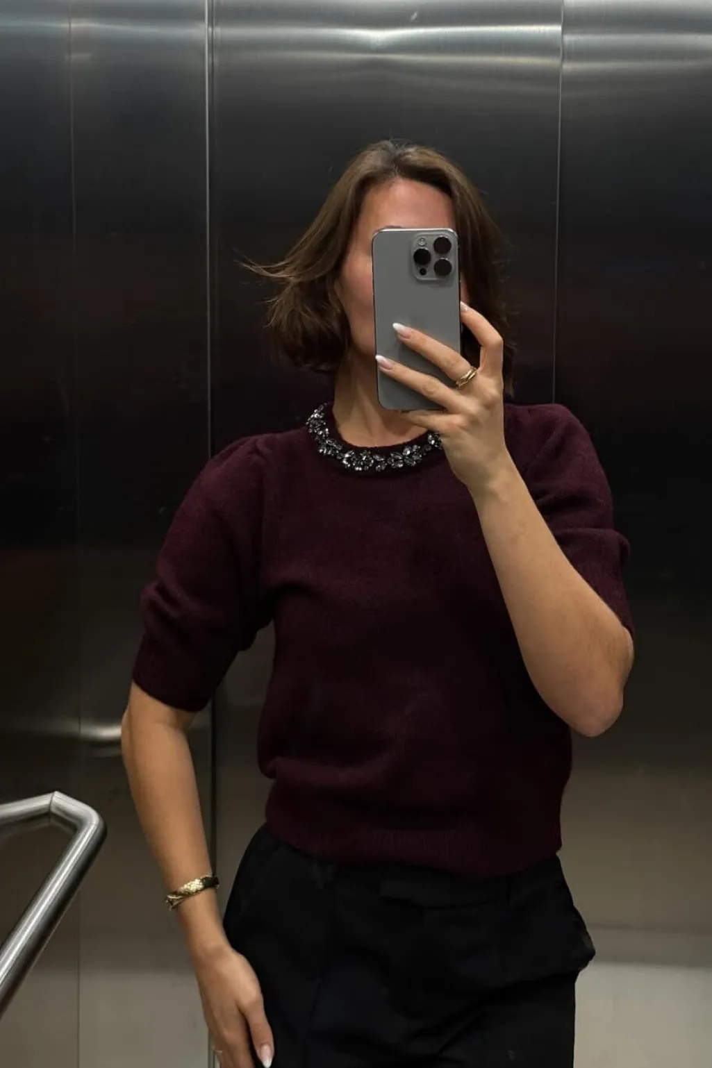 - Rund halsudskæring med pailletter