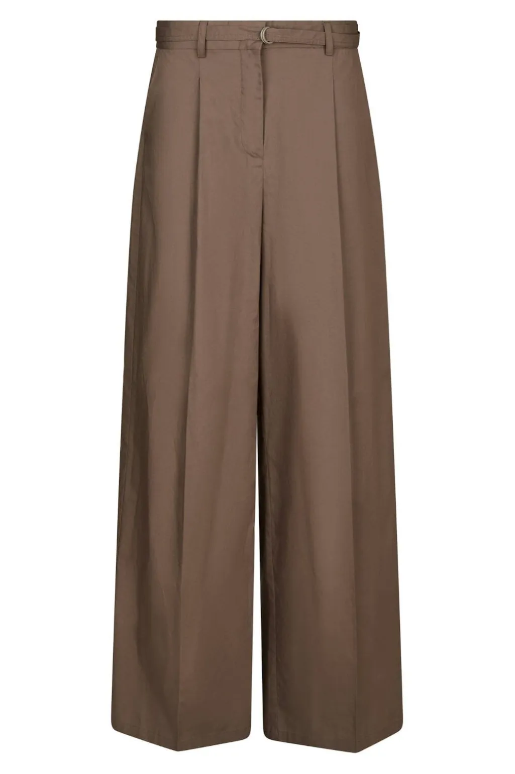 Poplinbukser fra Neo Noir i støvet brun. Bukserne har høj talje og pressefolder foran. Den vide benåbning og det lette poplinmateriale giver bukserne et luftigt udtryk.