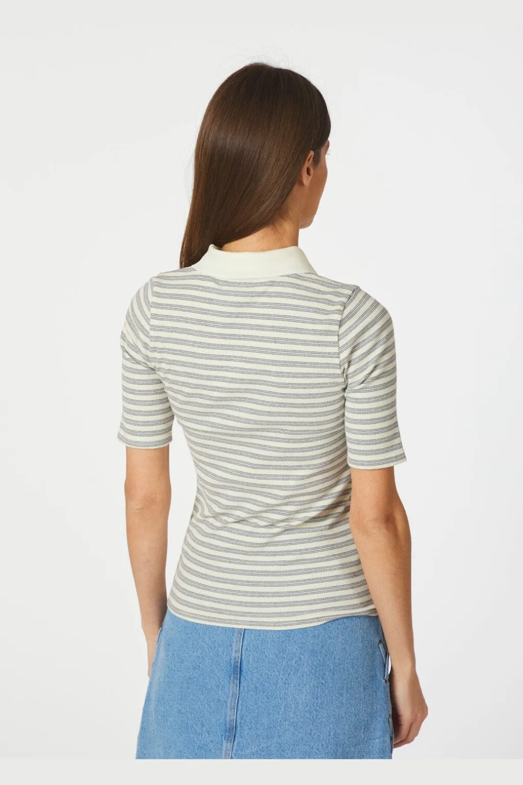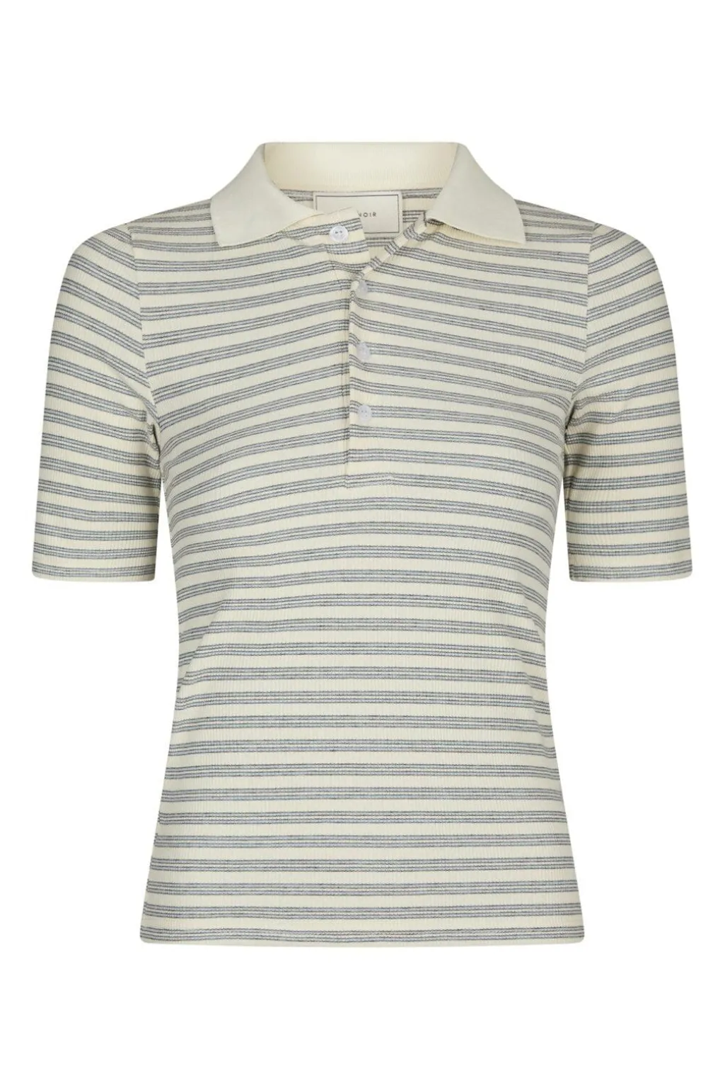 Stribet polobluse fra Neo Noir i lyseblå og cremefarvede striber. Blusen har en slim fit-pasform og er lavet af blødt bomuldsstof med stretch.