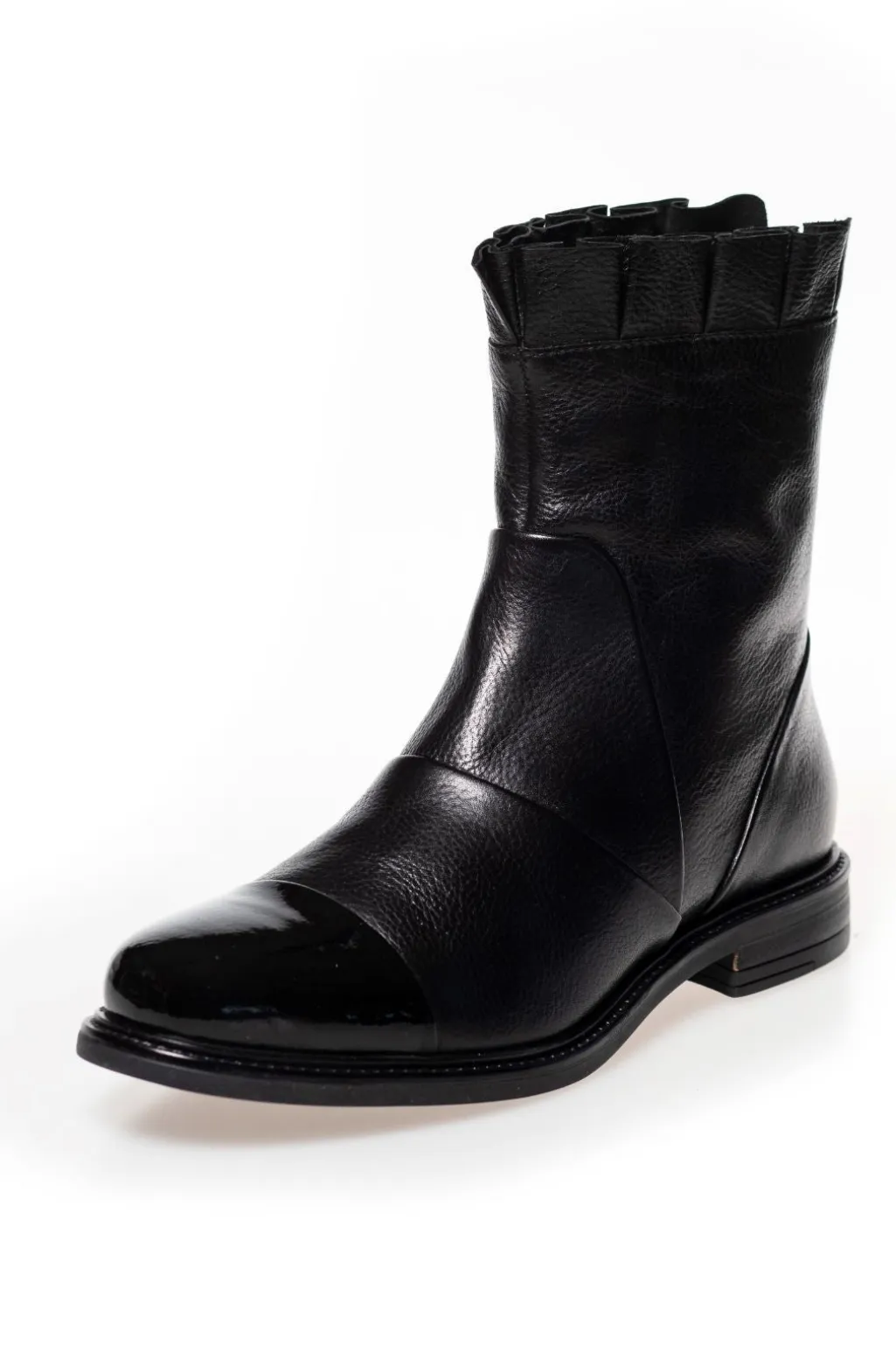 Ankelstøvler i meget blødt læder, med blød flæsekant og lynlås bagpå. Blød og flexibel gummisål og indersål med vores specielle Copenhagenshoes latex skum, der er skøn at gå på.