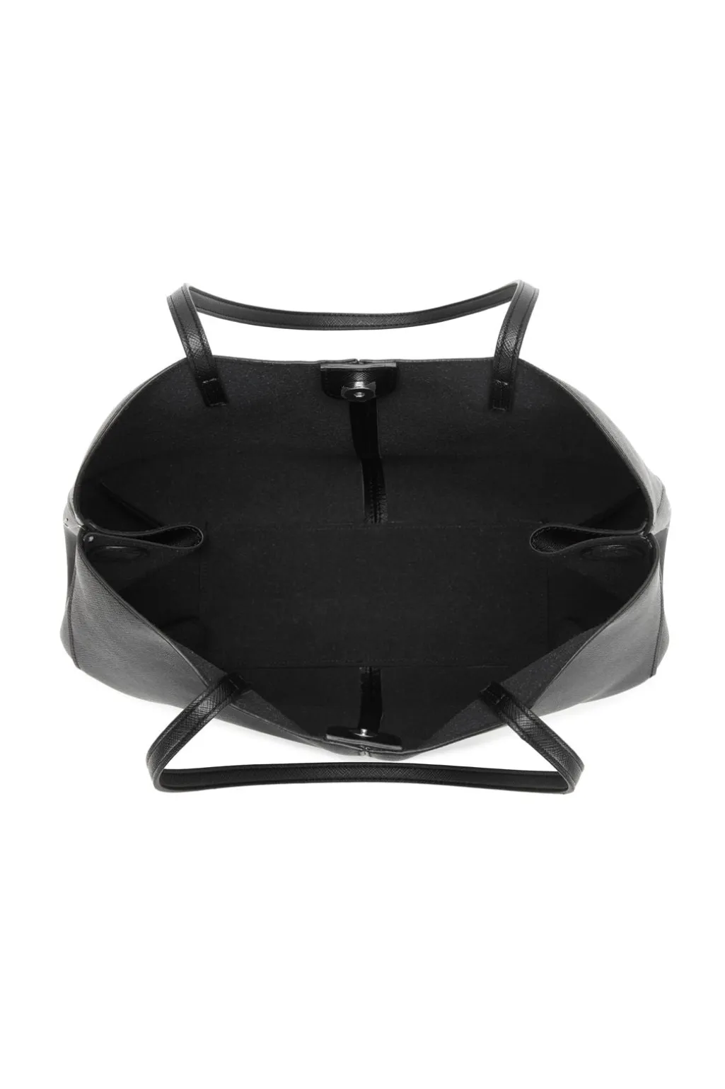 Sort taske fra Noella, lavet af polyurethan med en blød finish. Tasken har et rummeligt indre og lange, tynde håndtag.